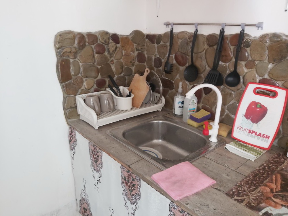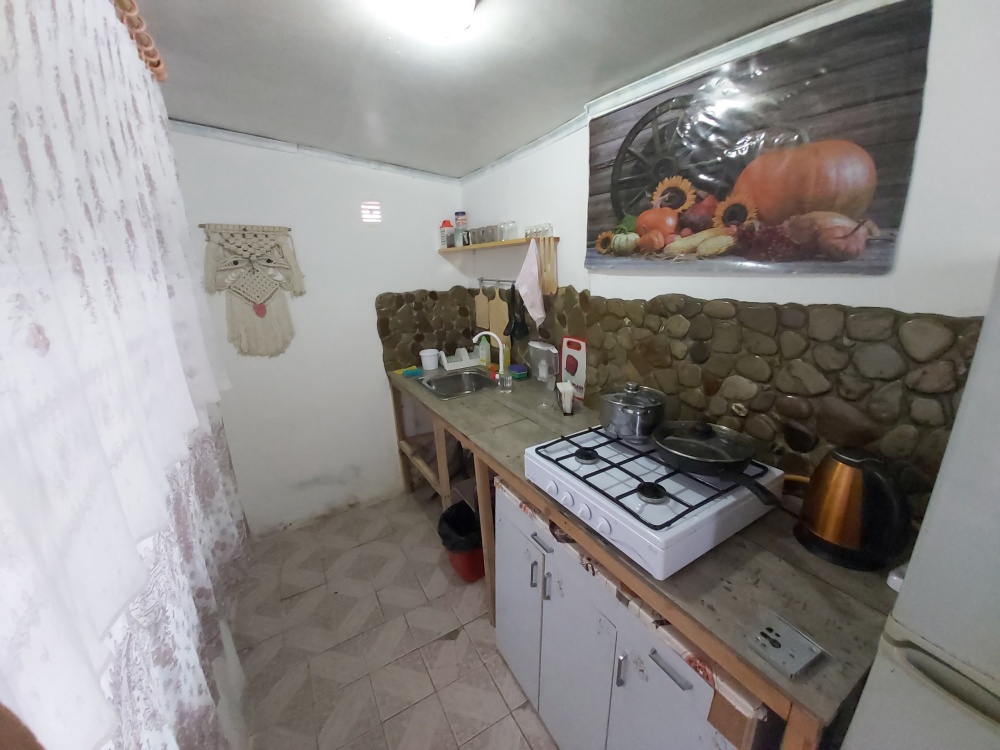 - кухня на мансарде (раковина, стол, посуда в комплекте, двух-комфорочная газовая плита);