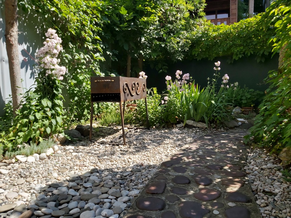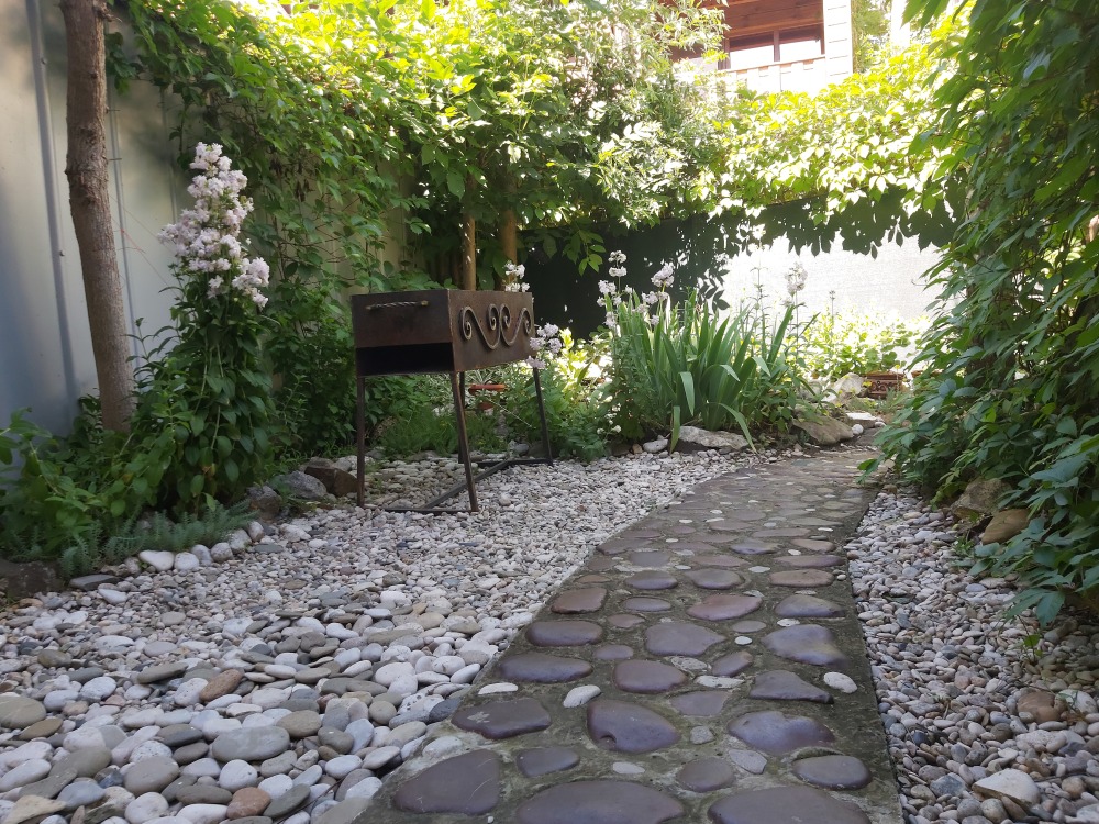 - 1-й этаж - двухкомнатный четырехместный номер стандарт с отдельной летней кухней во дворе и беседкой для обедов, отдельным входом;