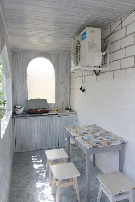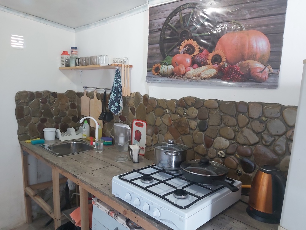 - кухня во дворе (холодильник, раковина, рабочий стол, посуда в комплекте, газовая плита);