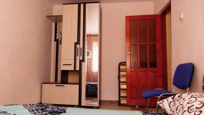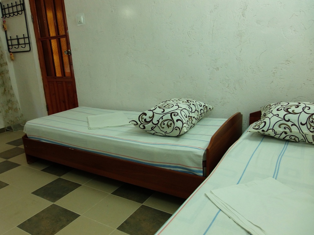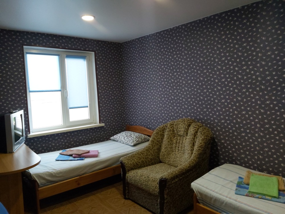 В каждой комнате две односпальные кровати + добавочное место (раскладное кресло 60*2000 см);