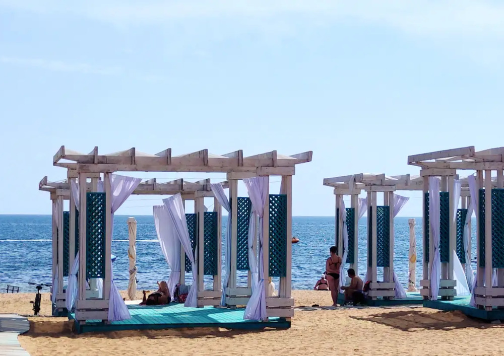 Расстояние до пляжа, пешком 10 минут, по ровной дороге. Пляж песчаный оборудованный всем необходимым: кафе, водные развлечения, зонтики. Наши пляжи идеально подходят для комфортного отдыха с детьми, вход в море плавный.