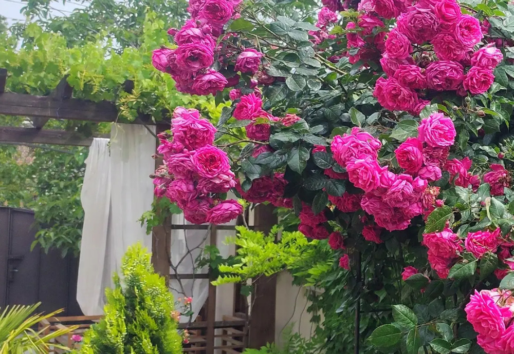Красивая ухоженная территория, где можно вечером можно собраться с новыми друзьями, пожарить шашлык и отдохнуть в тенистой беседке.