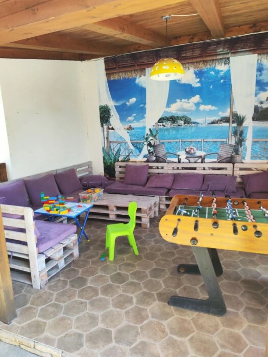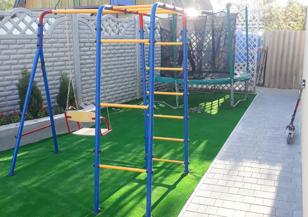 Для деток есть детская площадка, батут и беседка с игрушками и настольными играми.