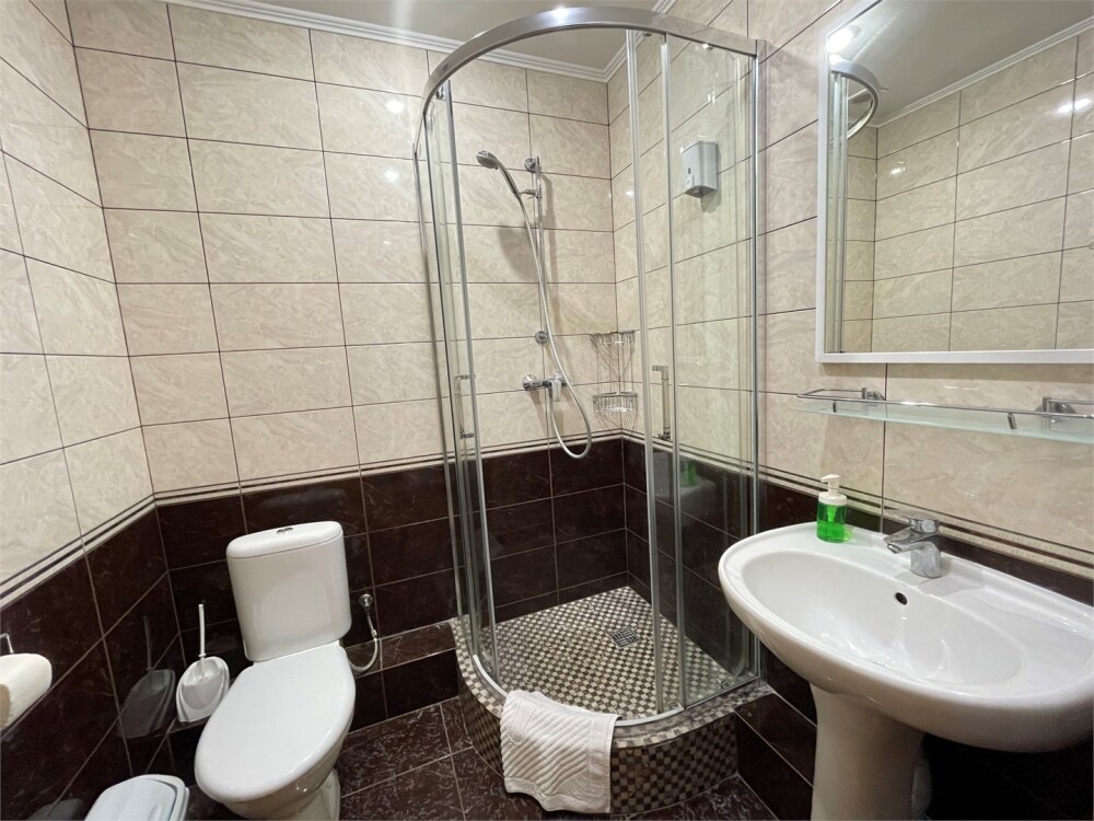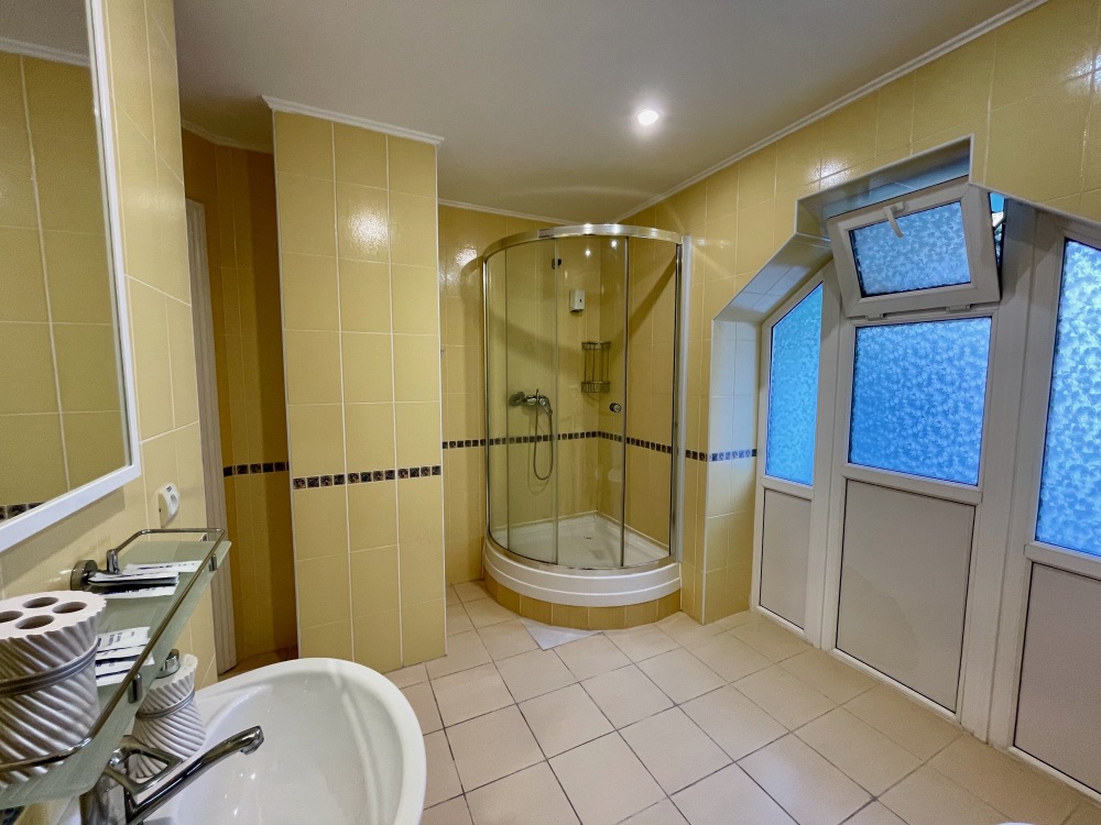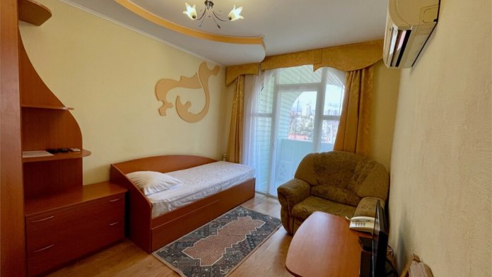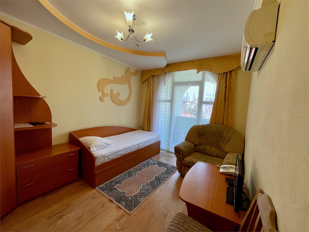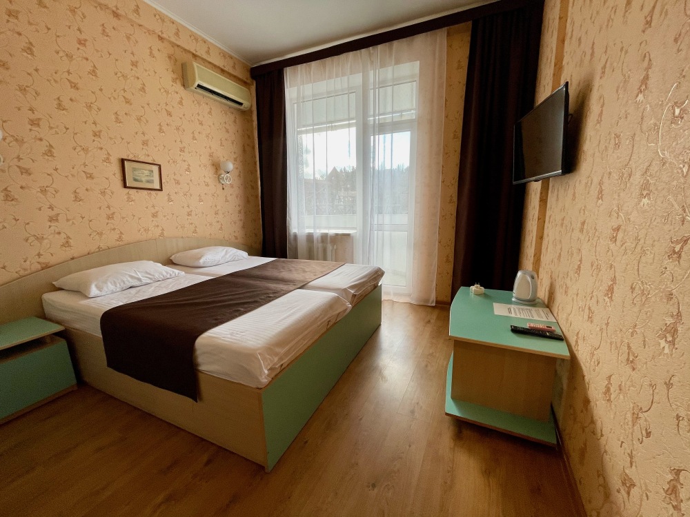 В номере имеются все удобства, установлена односпальная кровать. Небольшой балкон с видом на речку.
