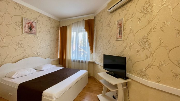 В гостинице 25 номеров, все имеют индивидуальный дизайн. Номера оборудованы телефоном, телевизором, цифровым телевидением, системой микроклимата, холодильником. Большая часть номеров с балконами.