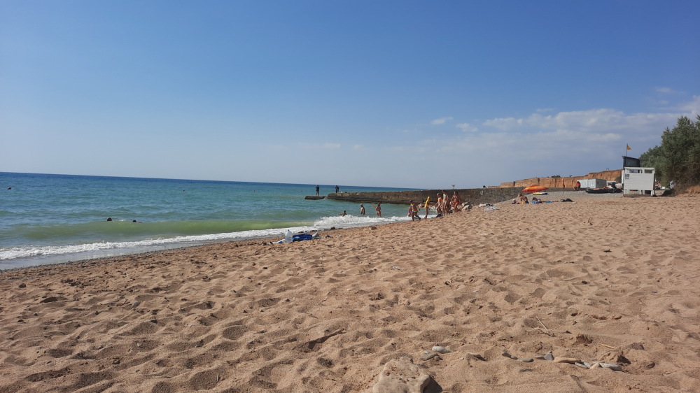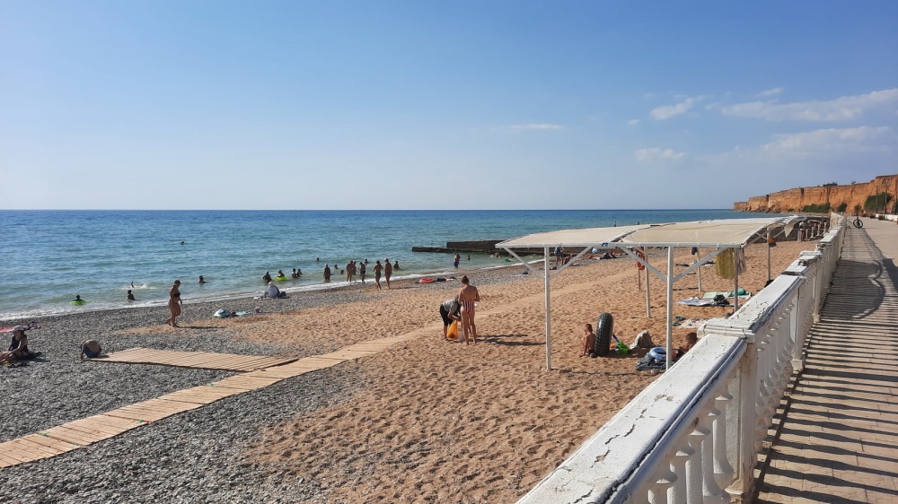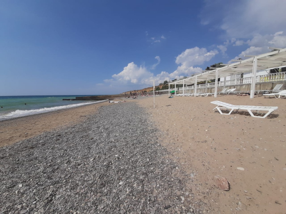 Пляж — песчано-галечный, с пологим входом, безопасен для детей.