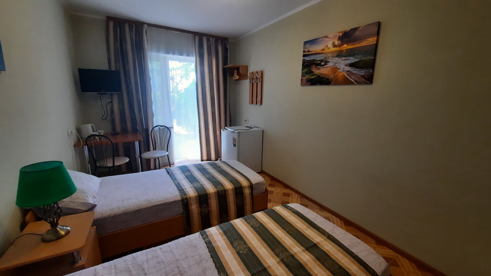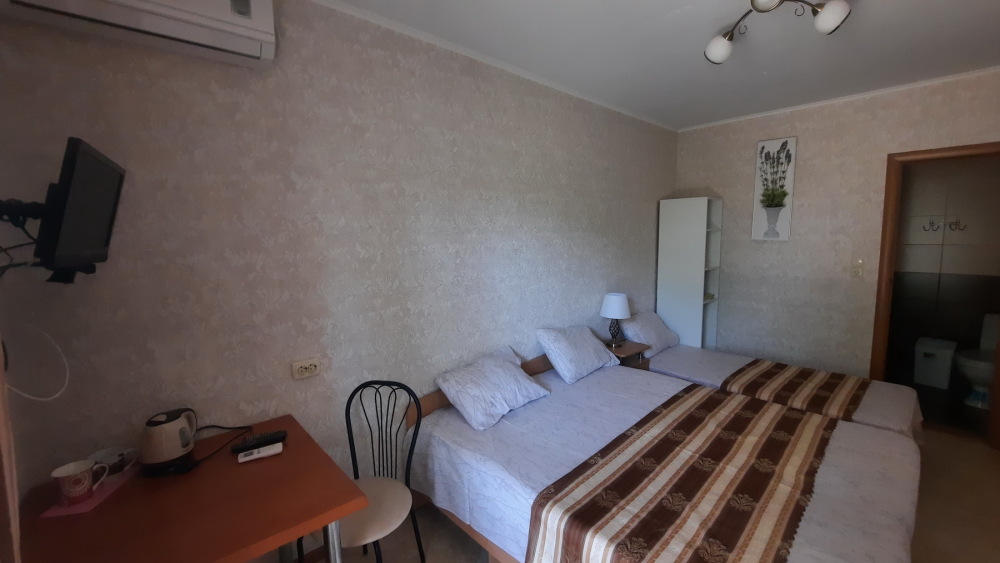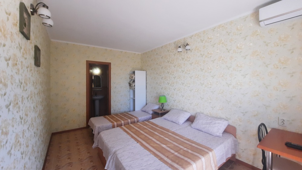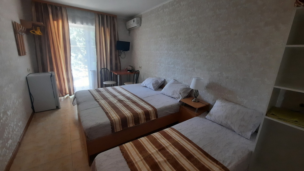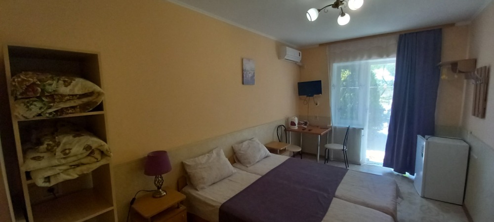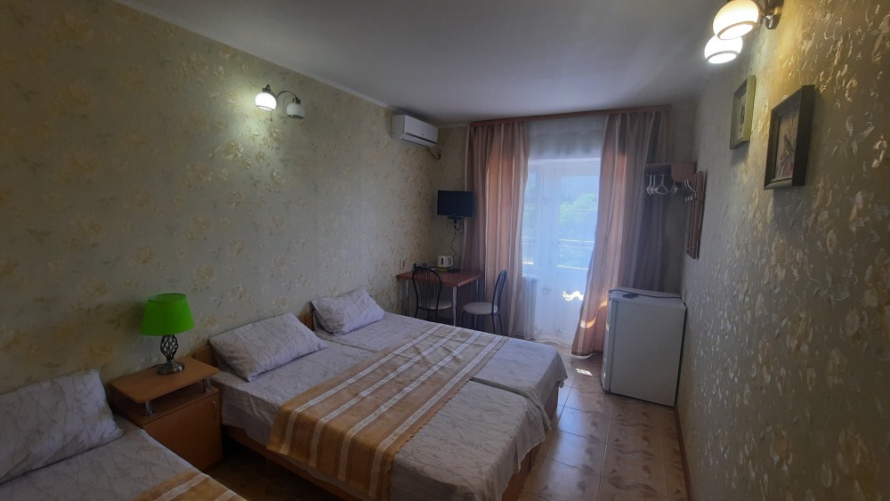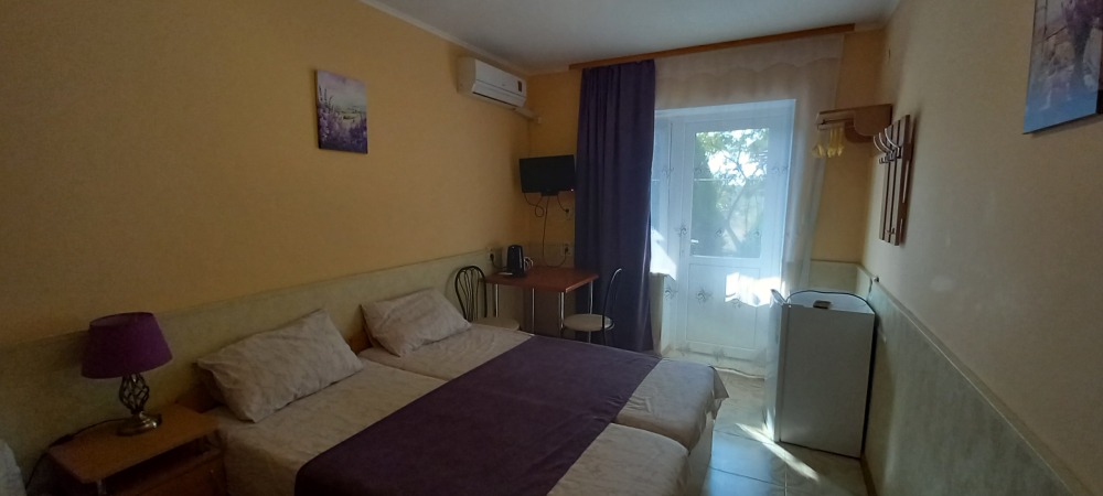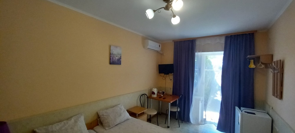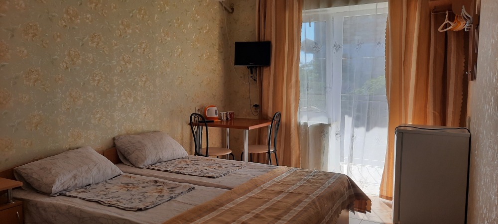 Цены — честные, 2-местный номер — от 1350₽/сутки в июне. Это в 2–3 раза дешевле, чем в Ялте или Алуште, а комфорт — на уровне.