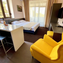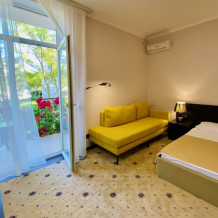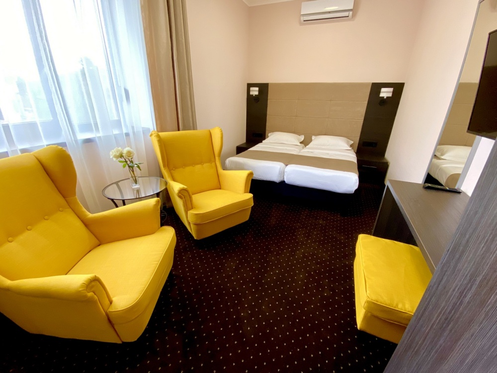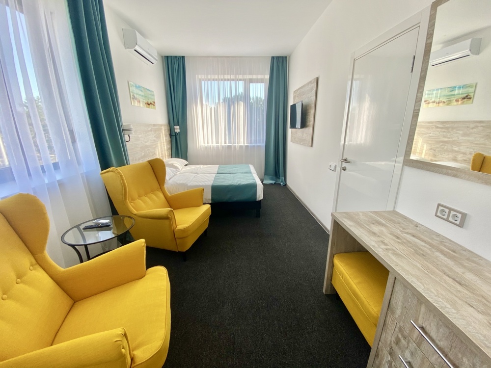 Современный отель с уютными номерами располагает к комфортному семейному отдыху. Рядом замечательный, благоустроенный песчаный пляж «Учкуевка», детский парк и вся инфраструктура города: магазины, рынок, аптека, поликлиника, развлечения.