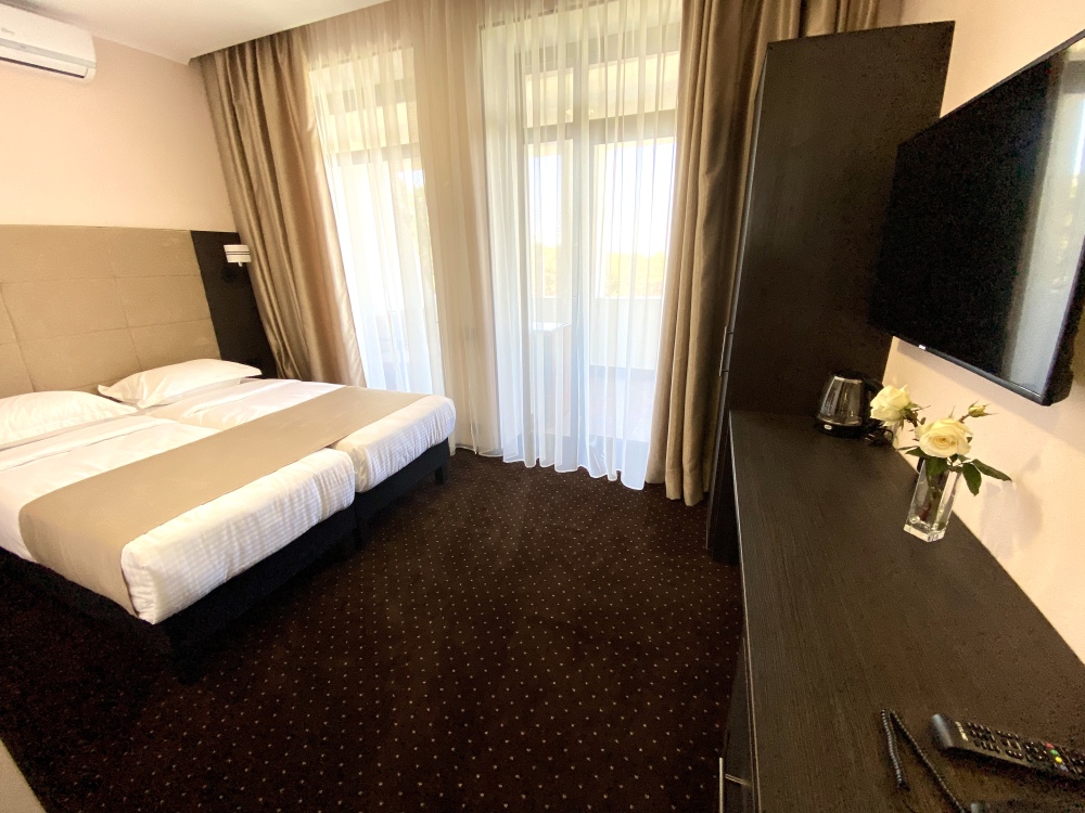 обратите внимание: есть номера с балконом и без; в номере одна большая кровать 180х200 или две 120х200
