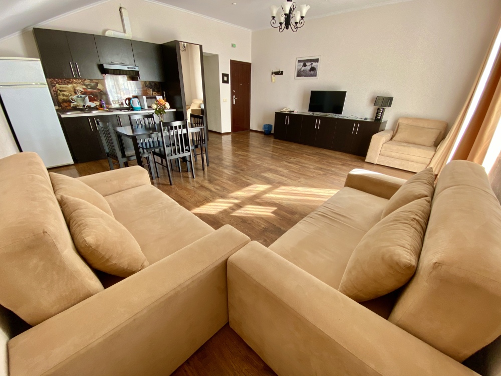 Двухкомнатный номер, рассчитанный на семью из 2-х - 4-х человек. С великолепным видом и огромной террасой.