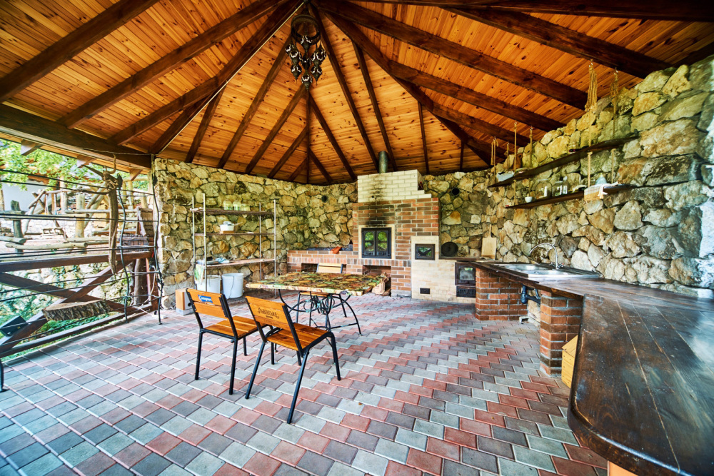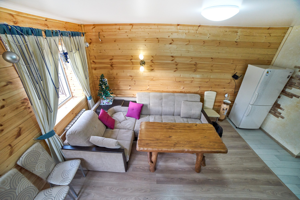 На собственной территории каждого дома вы найдёте беседку, мангальную зону и бассейн для полного релакса. Для Вашего удобства у нас есть парковка, а разнообразие отдыха дополнят баня на дровах, банные чаны.