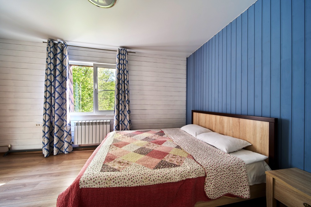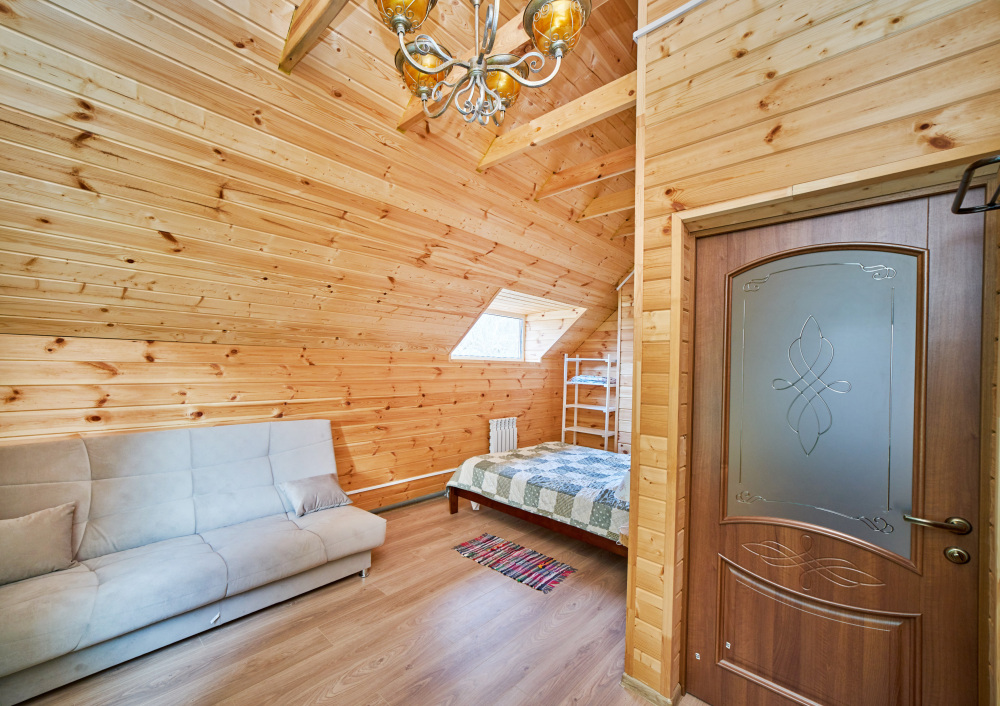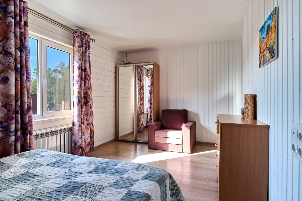 2 этаж: 3 спальни, в каждой двуспальная кровать, в одной есть доп. диван; Ванная комната.