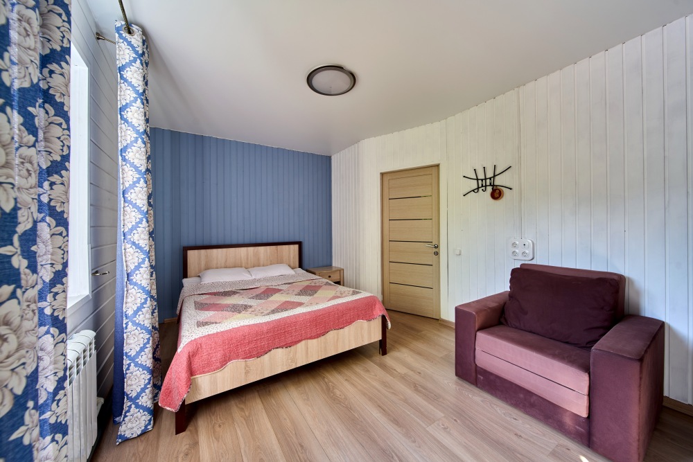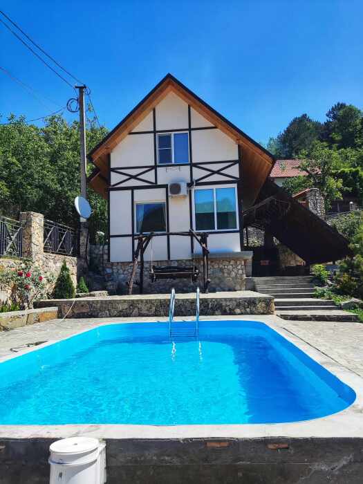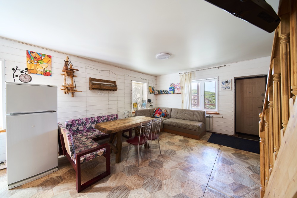Для размещения гостям предлагают дома с бассейнами, кухнями «под ключ» и видами на горы. Вы можете арендовать один из трех домов разной вместимости, каждый из которых оснащён полностью оборудованной кухней, уютными спальнями и гостиной для тёплых посиделок. Дом в альпийском стиле с мансардным этажом, где могут комфортно разместиться 10-12 человек. Двухэтажный коттедж на 6-8 человек. И уютное шале, 2 этажа, для размещения 4-6 взрослых.