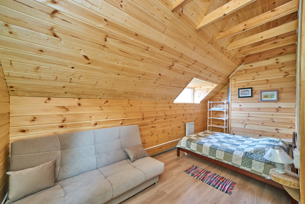 2 этаж: 2 спальни, в каждой двуспальная кровать и диван; Туалет.