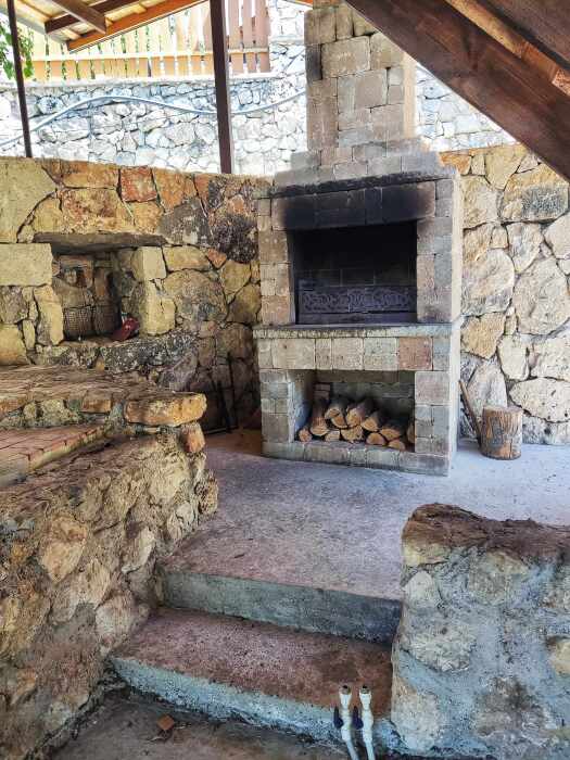 На территории: беседка с мангалом, банный чан, баня, парковка.