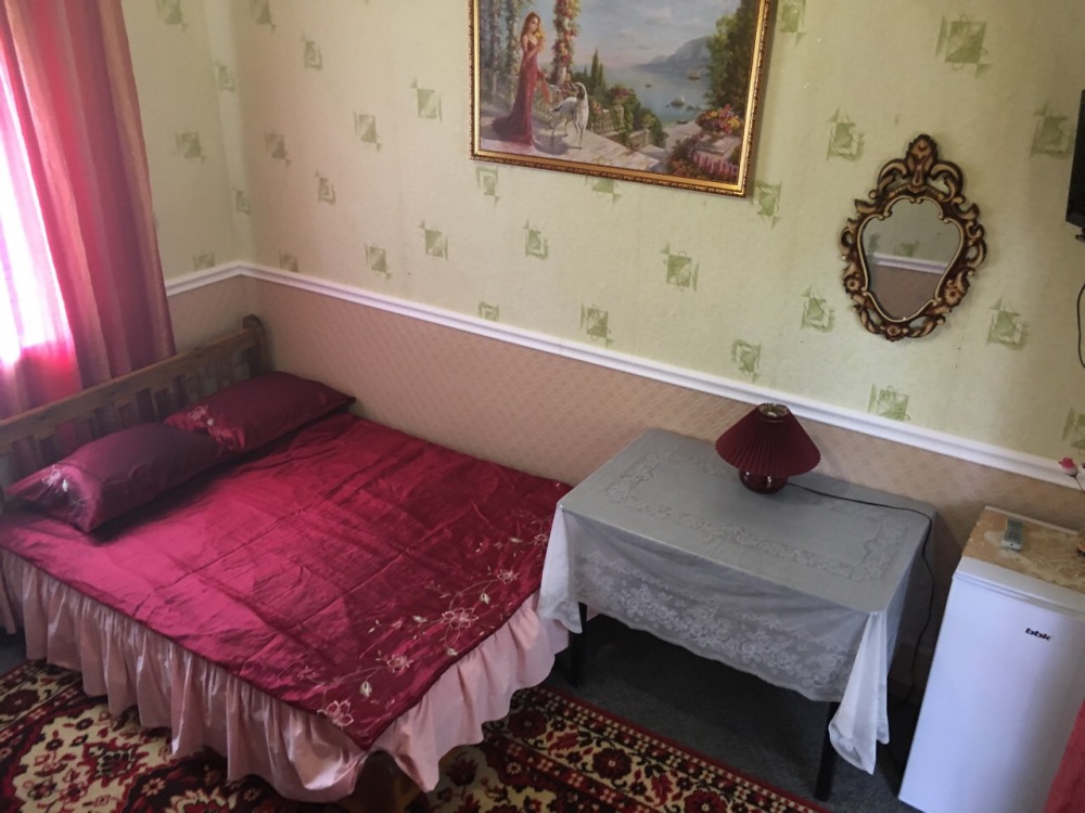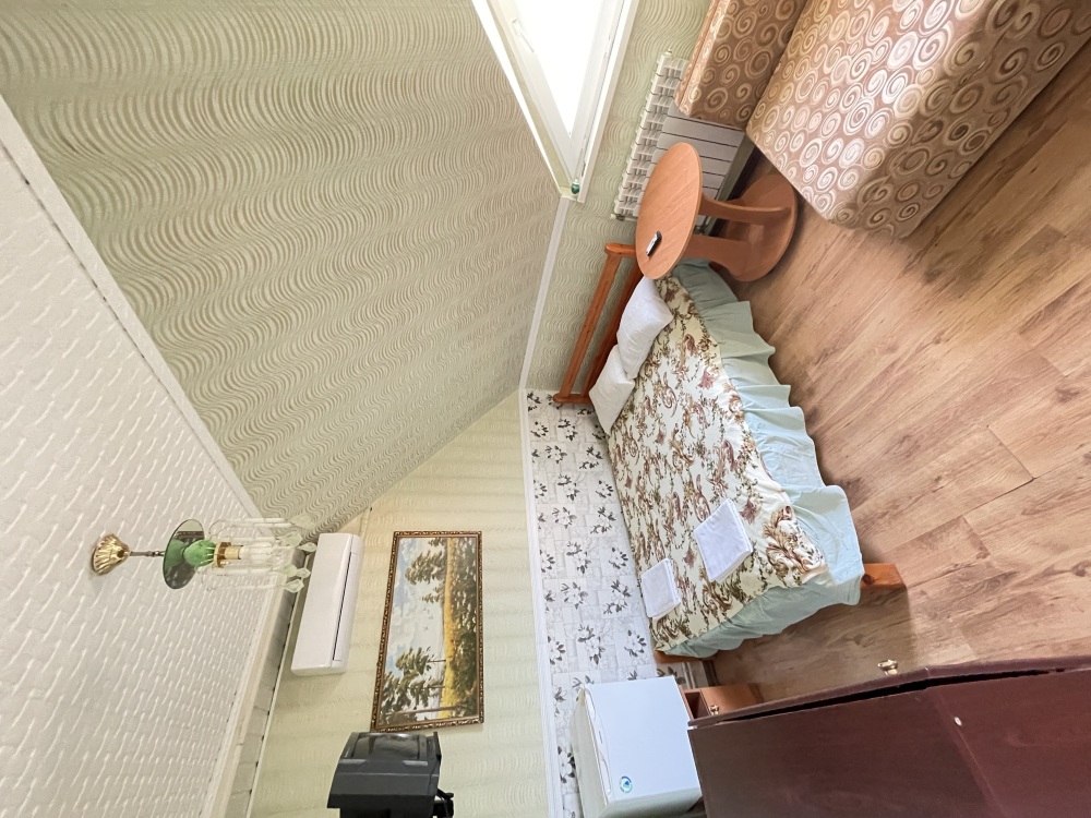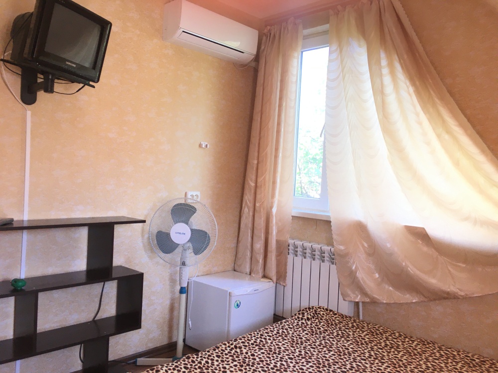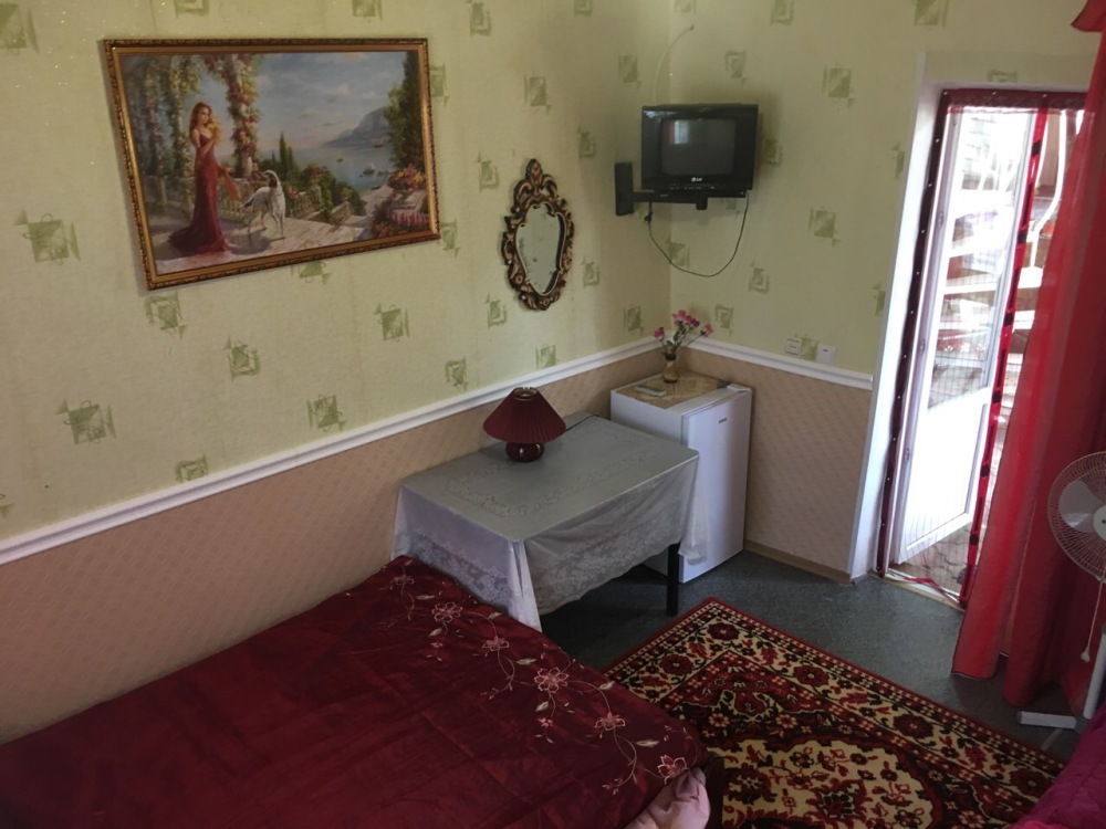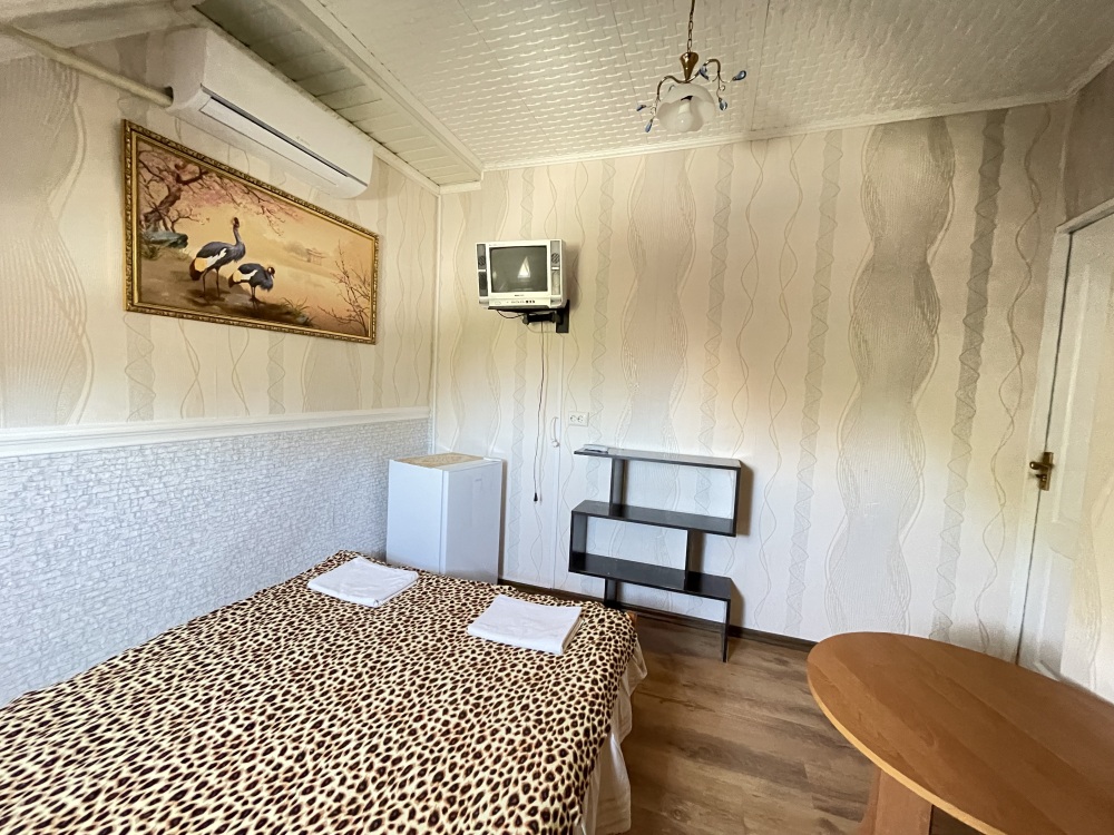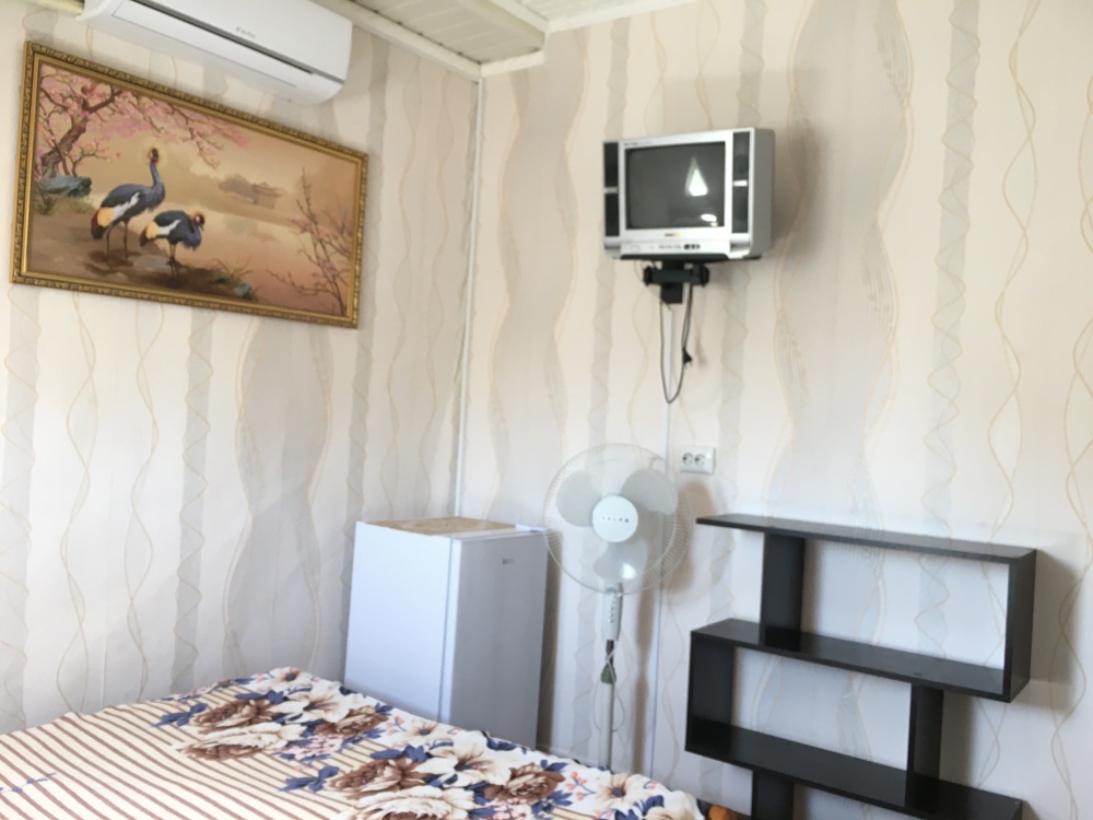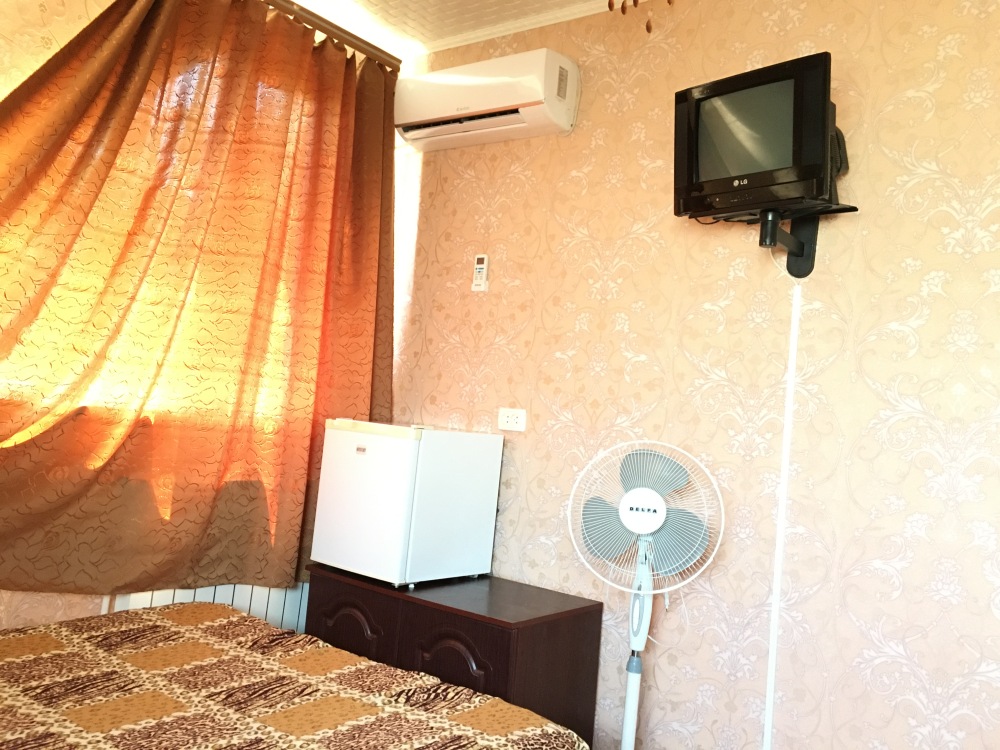 В номере находится 2-х спальная кровать с ортопедическим матрацем, кресло-софа, столик , стул, телевизор, холодильник, кабельное ТВ, WI-FI, кондиционер,вентилятор. Душевая и санузел на 2 номера.