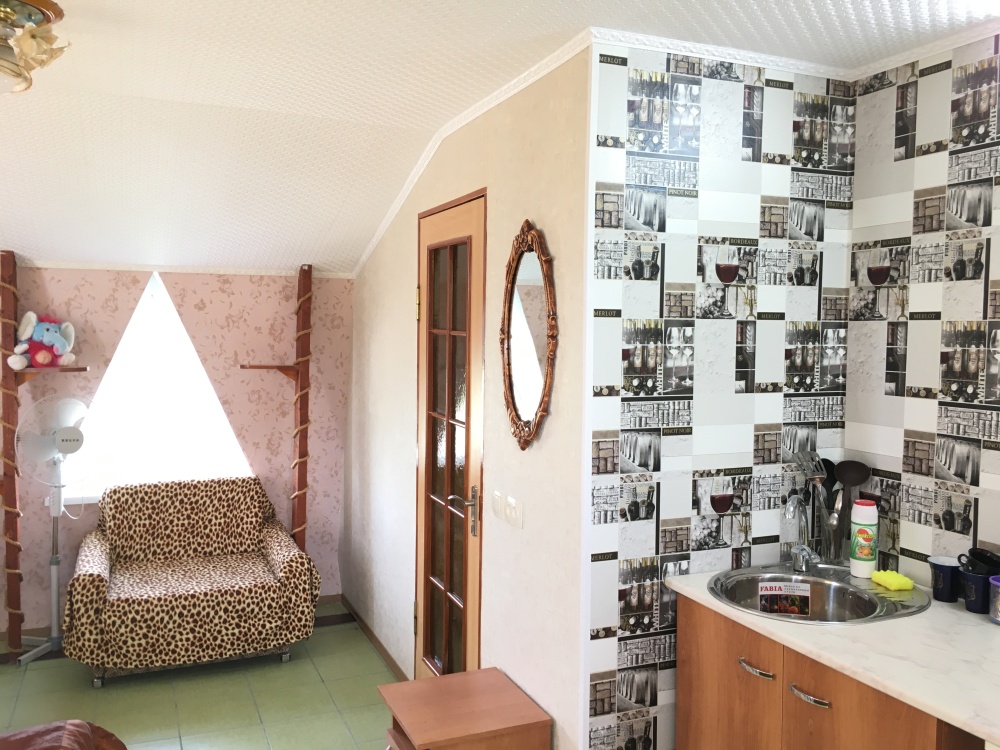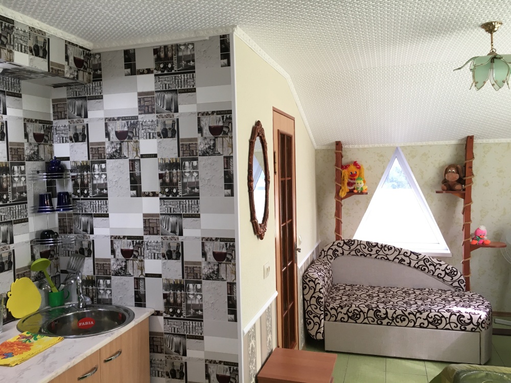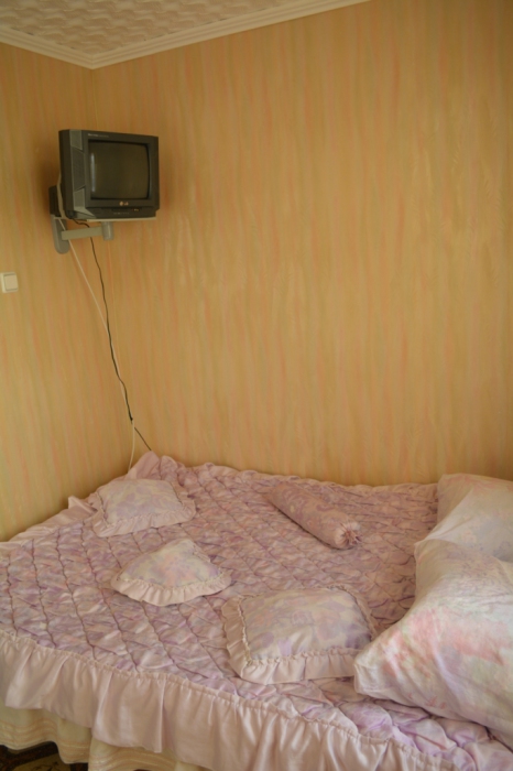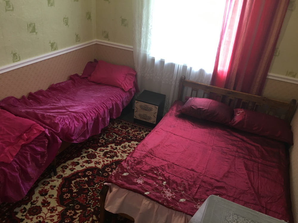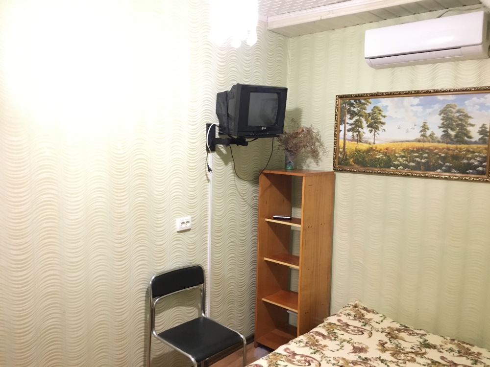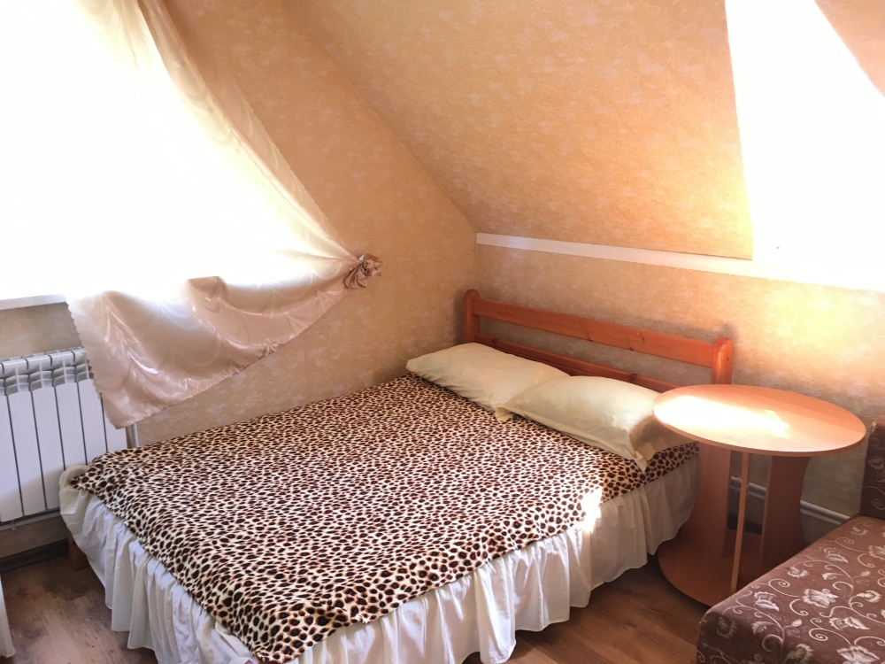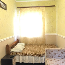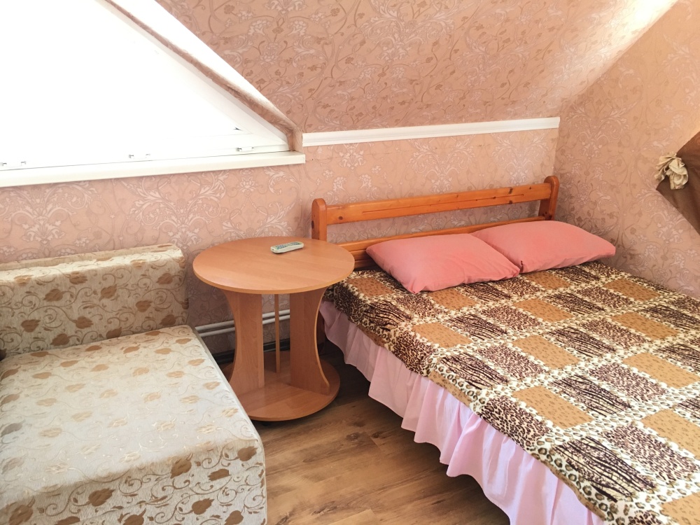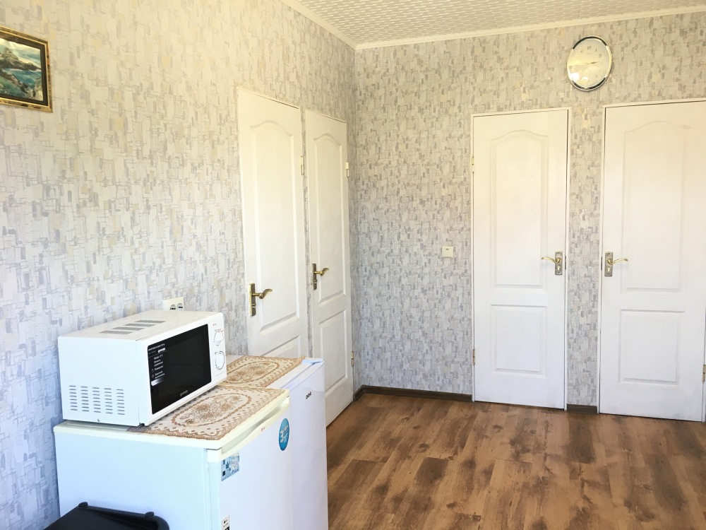 В номере находится 2-х спальная кровать с ортопедическим матрацем, кресло-софа, столик , стул, телевизор, холодильник, кабельное ТВ, WI-FI, кондиционер,вентилятор. Душевая и санузел на 2 номера.