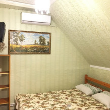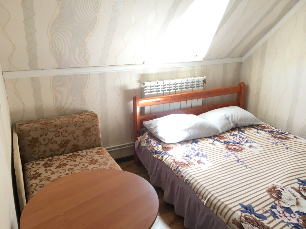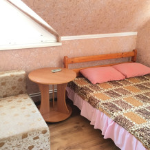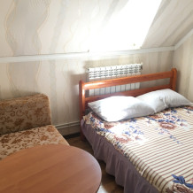 В номере находится 2-х спальная кровать с ортопедическим матрацем, кресло-кровать, столик, стул, телевизор, холодильник, кабельное ТВ, WI-FI, кондиционер.Санузел,душевая на 2 номера.