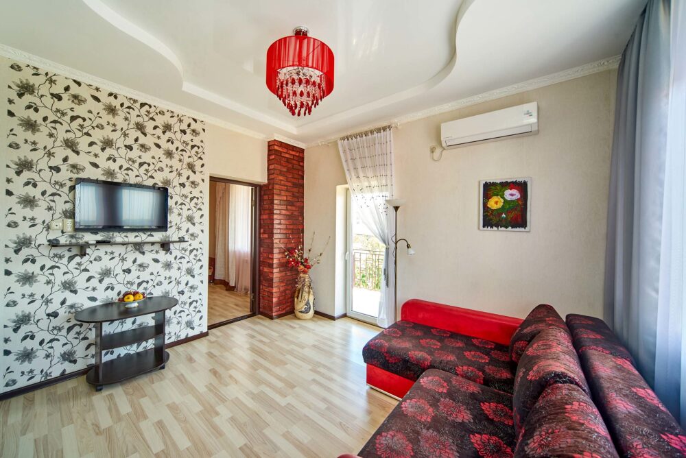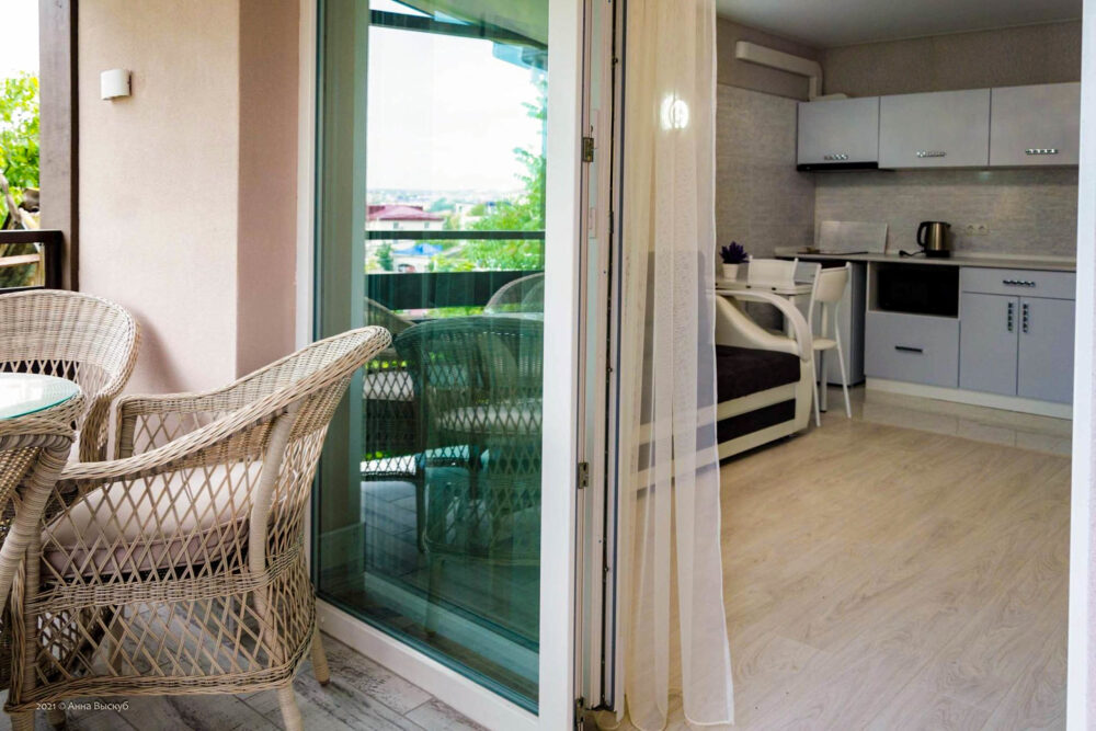 Комфортный номер с прекрасным видовым балконом, оснащенным ротанговой мебелью. В номере могут поселиться как два гостя ,желающие отдельные спальные места, так и семья из 3-4 человек. Номер оснащен кухней с возможностью полноценной готовки.