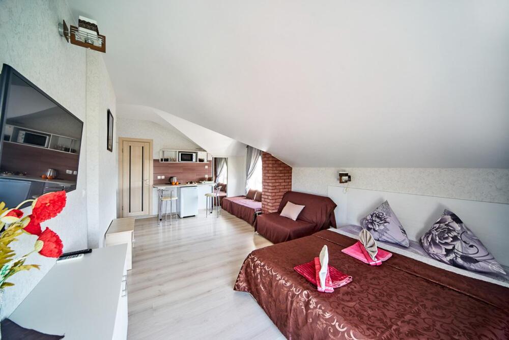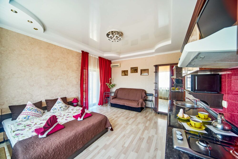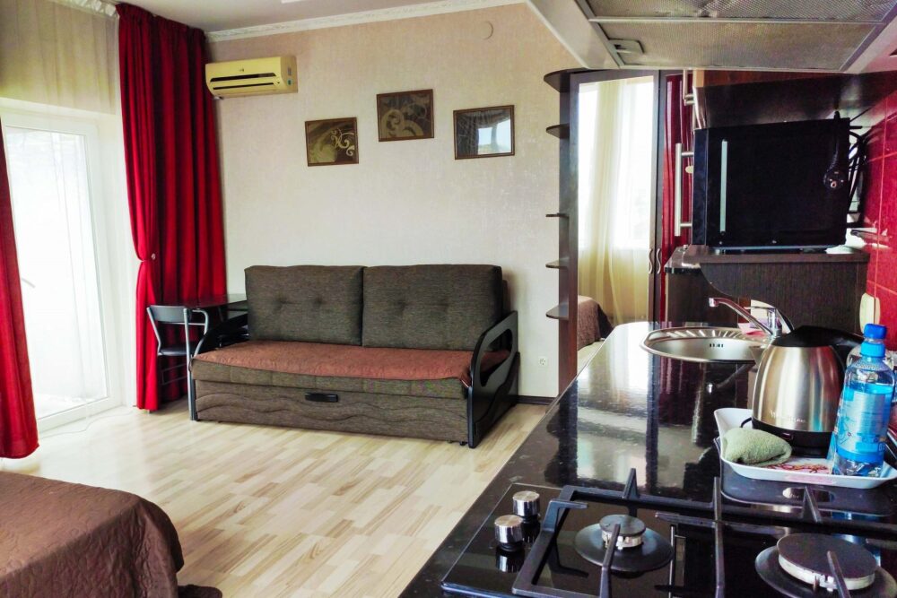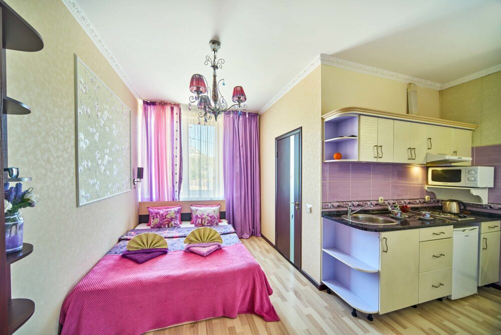 Комнаты гостевого дома могут быть выбраны исходя из Ваших потребностей: это могут быть комнаты-студии с индивидуальной кухней, комнаты с летней кухней или комнаты с мини-кухней. В каждом комнате индивидуальный санузел и душ, удобные спальные места с ортопедическими матрацами, наличие фена и сейфа.