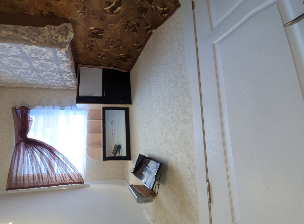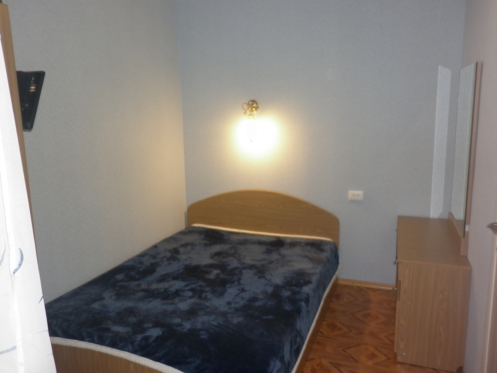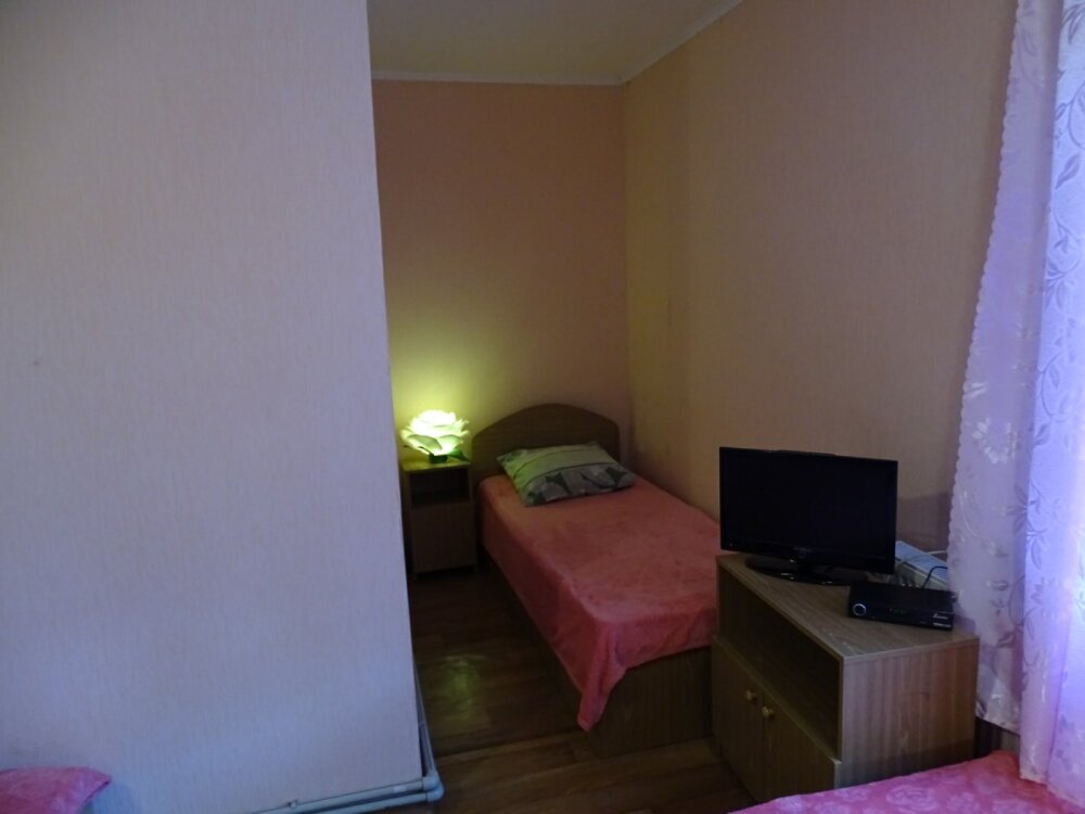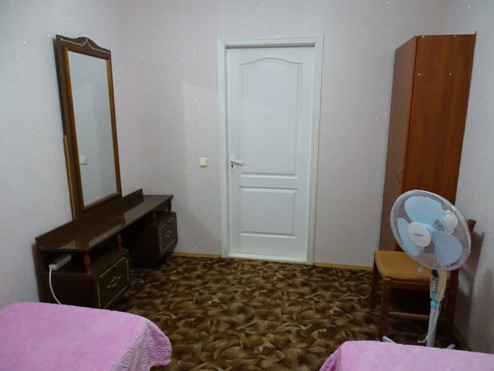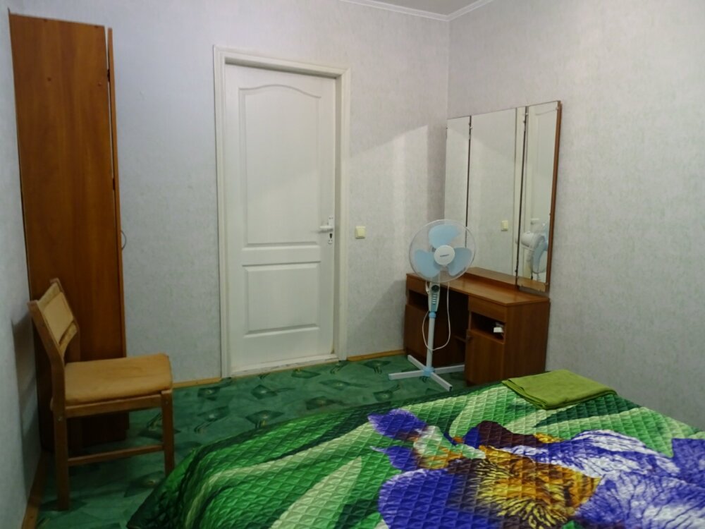 В номере односпальная кровать, тумбочка, вешалка, вентилятор. Сан. узел на этаже