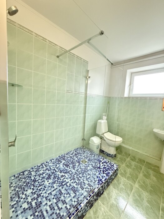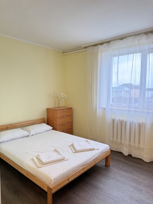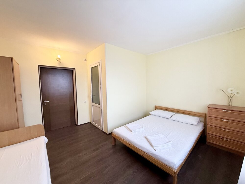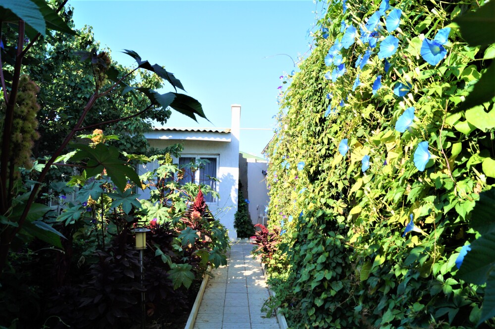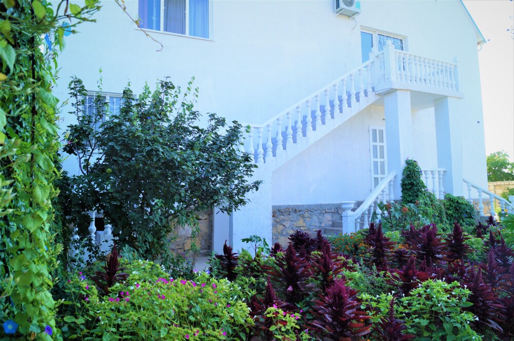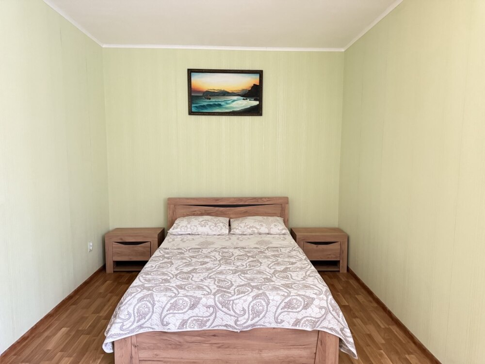 Дом 100 кв.м включают в себя : две спальни, кухню, ванна , душевая кабина , туалет, стиральную машину, ТВ, кондиционер.В номерах односпальные и двуспальные кровати, прикроватные тумбочки, стулья, шкаф, кондиционер, телевизор. Площадь апартаментов 100 кв.м . Общий двор с другими отдыхающими.