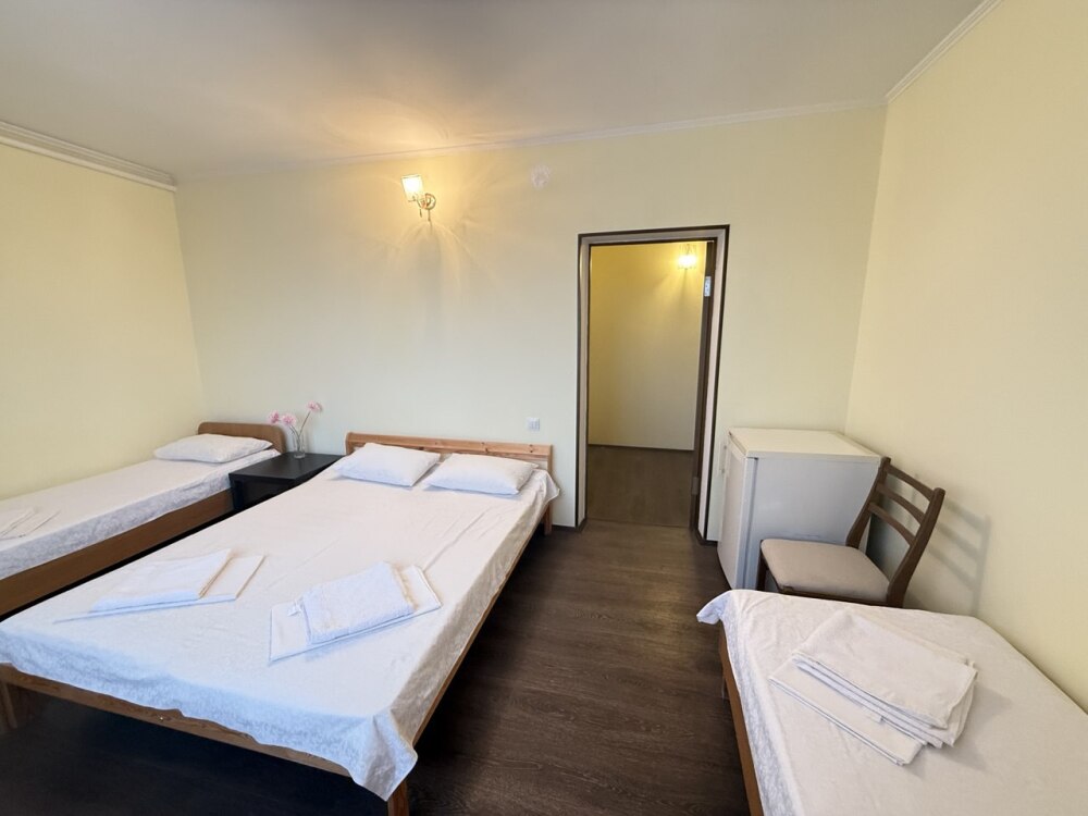 - Номера комфорт — 3-4-местные номера с удобствами в номере (душ,туалет, умывальник, телевизор, кондиционер). Все номера расположены на 2-ом этаже. В номере: набор мебели (кровати с прикроватными тумбочками,зеркало, стул, шкаф).(Размещение от 2-х до 5-ти человек).