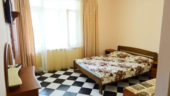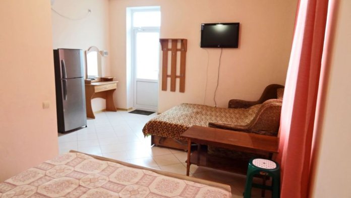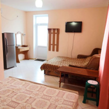 Имеются 2,3,4-местные номера со всеми удобствами. В каждом номере санузел, душевая кабина, холодная-горячая вода, кондиционер, телевизор (кабельное), холодильник, шкаф, трюмо, тумбочки, кровати, постельное белье, москитные сетки на окнах.