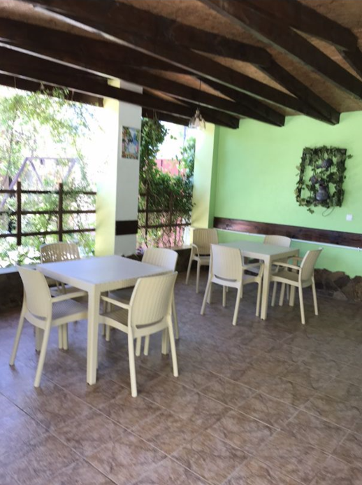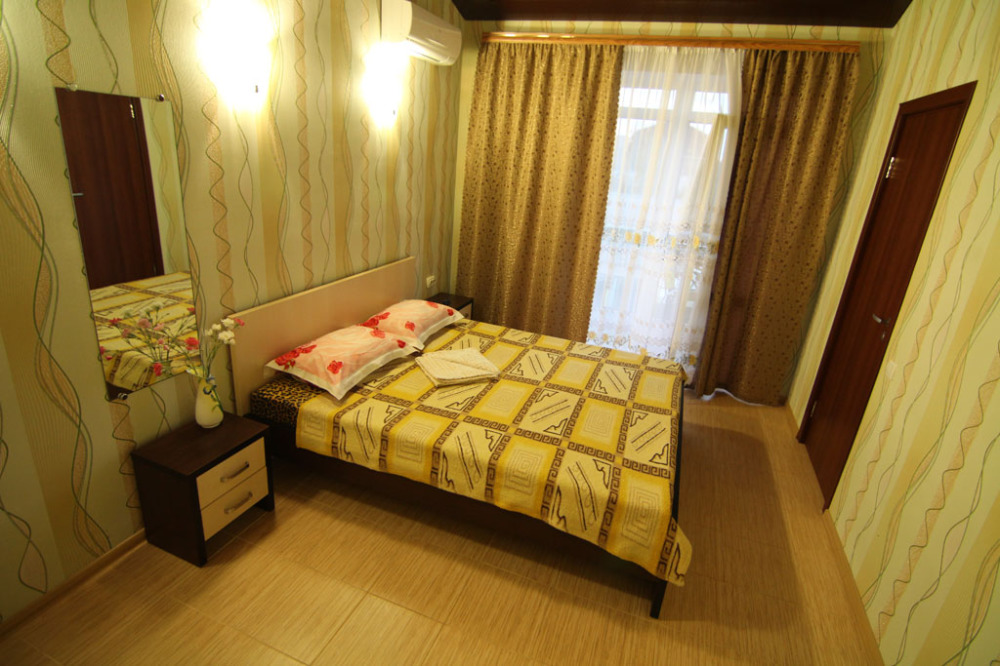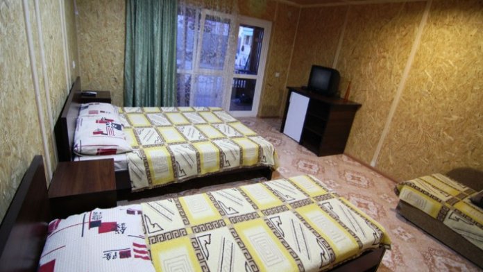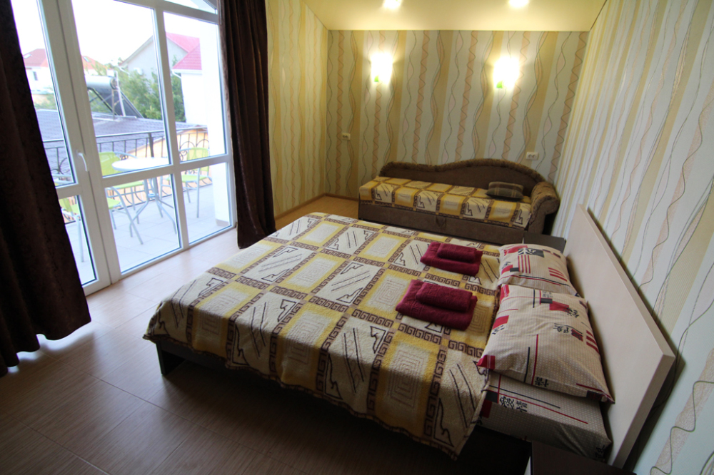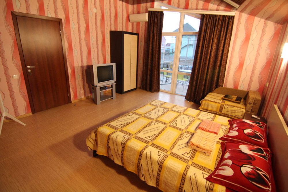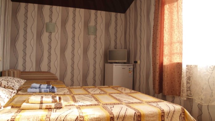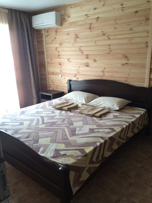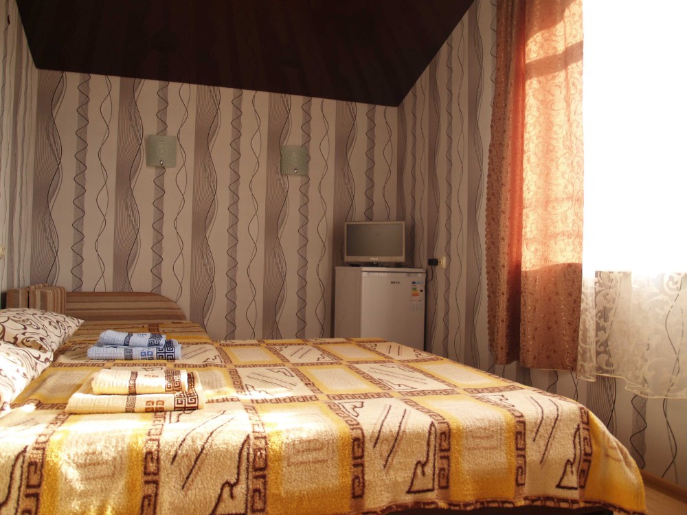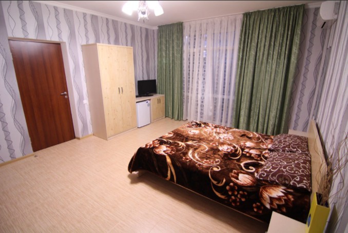 Предоставляем в аренду комфортабельные номера, вместимостью от 2-х до 5-ти человек, с новым современным ремонтом. В номерах все удобства (индивидуальный санузел, постоянно горячая и холодная вода). В каждом номере есть кондиционер, холодильник и телевизор. Wi-Fi. Выход на террасу. На территории есть кухня, беседки, скамейки и мангал. Есть возможность заказать питание. Детская площадка оборудована спортивным инвентарем для детей разного возраста. Есть батут.