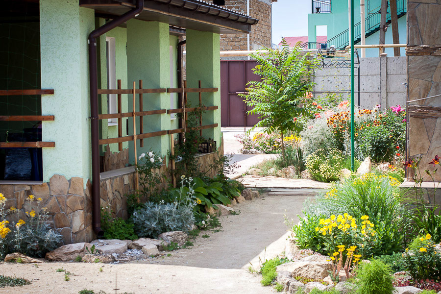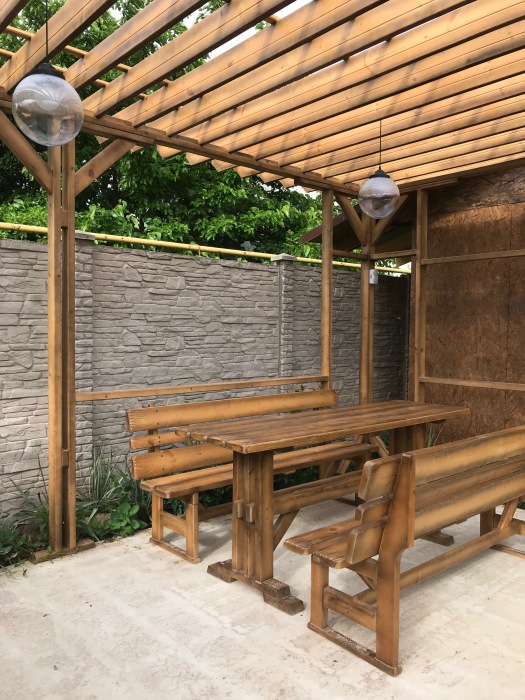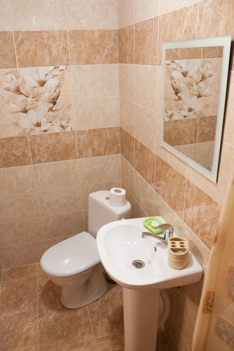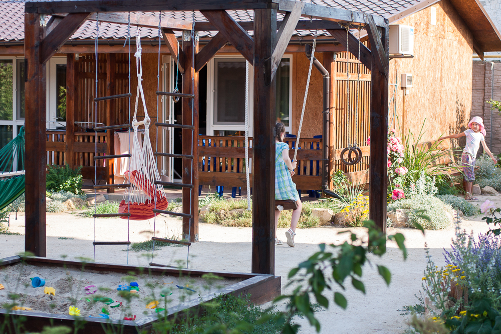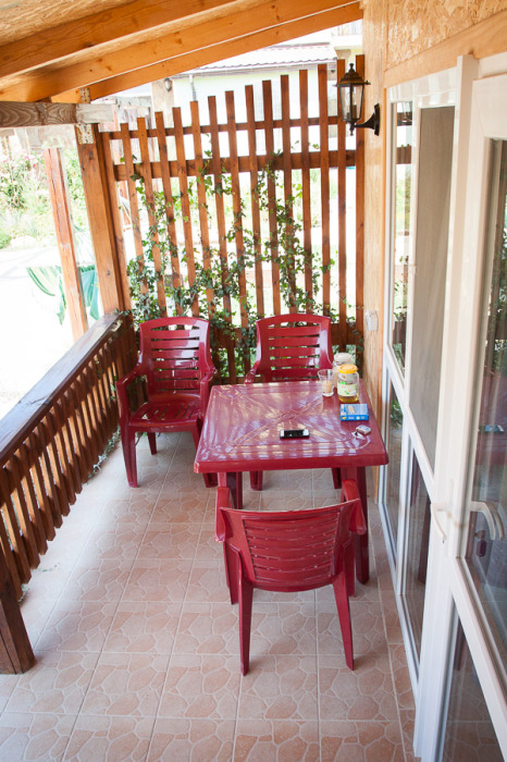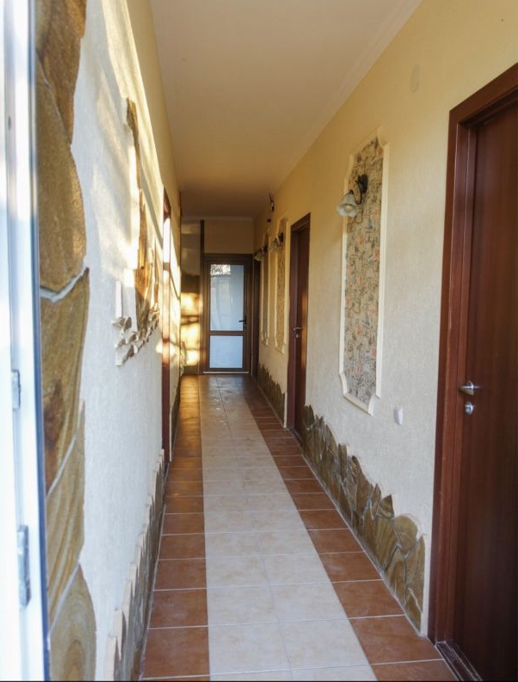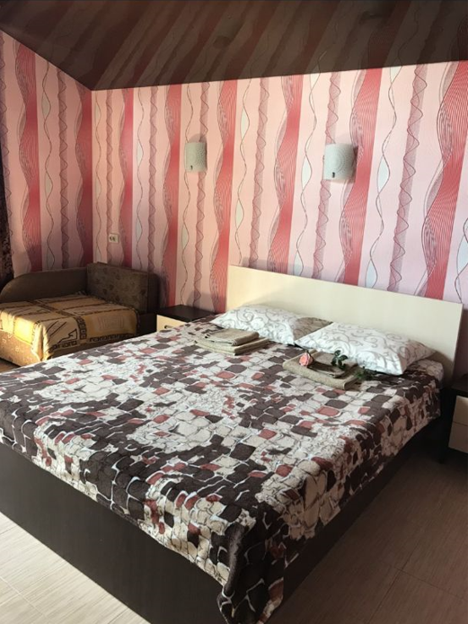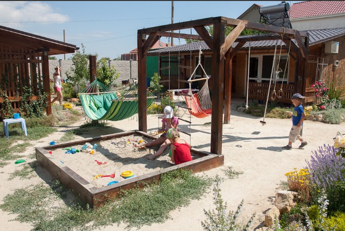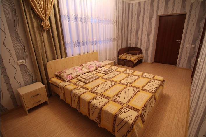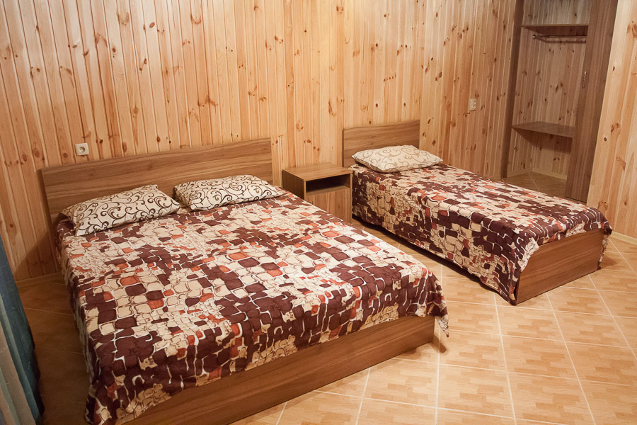 Предоставляем в аренду комфортабельные номера, вместимостью от 2-х до 5-ти человек, с новым современным ремонтом. В номерах все удобства (индивидуальный санузел, постоянно горячая и холодная вода). В каждом номере есть кондиционер, холодильник и телевизор. Wi-Fi. Выход на террасу. На территории есть кухня, беседки, скамейки и мангал. Есть возможность заказать питание. Детская площадка оборудована спортивным инвентарем для детей разного возраста. Есть батут.