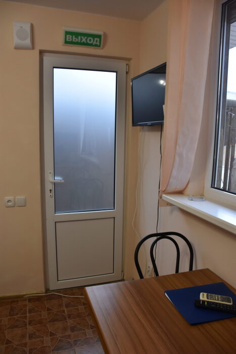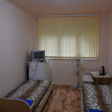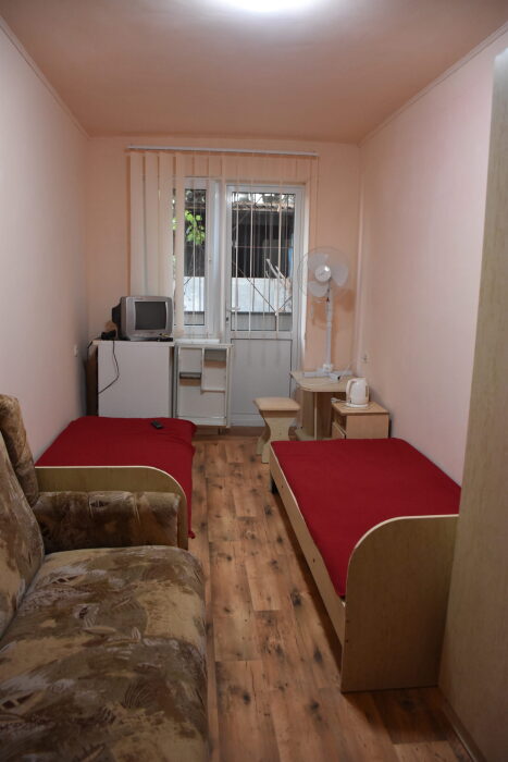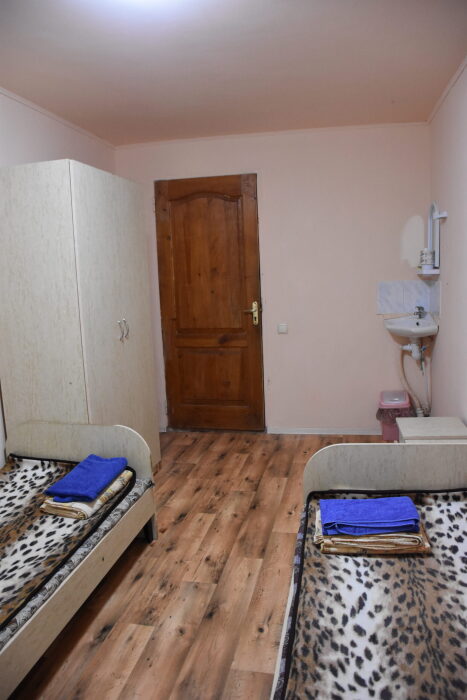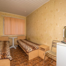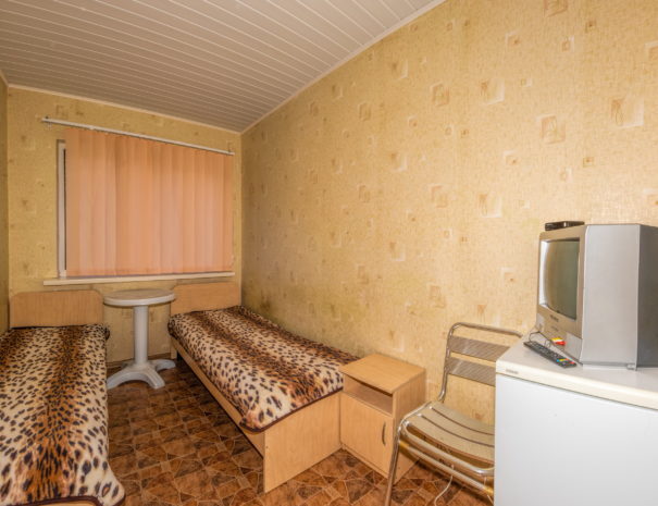 В каждом номере вентилятор, цифровое ТВ, Wi-Fi, две односпальные кровати, прикроватные тумбочки, платяной шкаф, электрический чайник, холодильник, необходимый набор посуды, обеденный стол и стулья. Санузел (душ и туалет) у данной категории номеров общий на четыре номера. Также к Вашим услугам общая кухня на четыре номера с кухонной мебелью, электрическими плитами и кухонными принадлежностями. При заселении конфигурация номера может незначительно отличаться (в зависимости от наличия свободного номера).