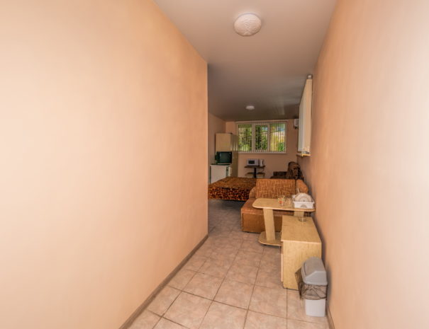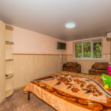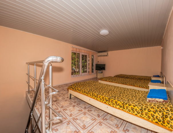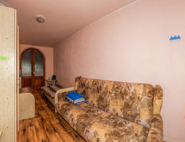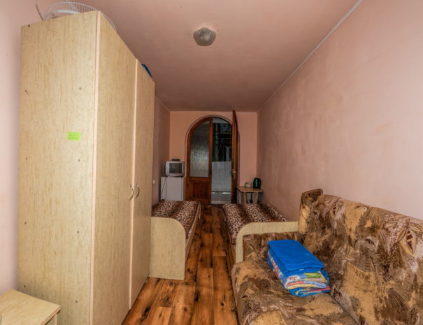В каждом номере вентилятор, цифровое ТВ, Wi-Fi, две односпальные кровати и диван, платяной шкаф, электрический чайник, холодильник, необходимый набор посуды, столик и табуретки, а также личный балкон. Санузел (душ и туалет) у данной категории номеров общий на четыре номера. Также к Вашим услугам общая кухня на четыре номера с кухонной мебелью, электрическими плитами и кухонными принадлежностями. При заселении конфигурация номера может незначительно отличаться (в зависимости от наличия свободного номера).