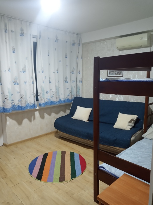 • 1 двуспальная кровать, 2 дивана-кровати, 1 двухъярусная кровать