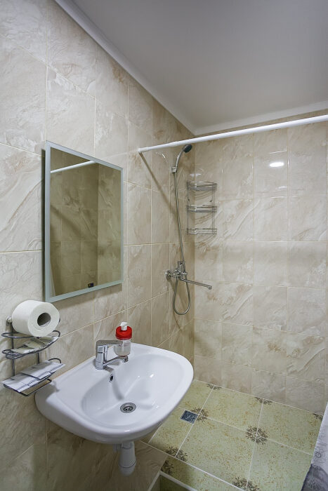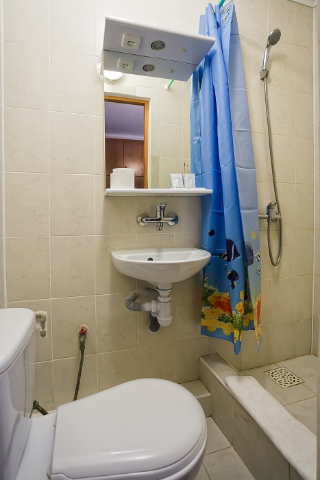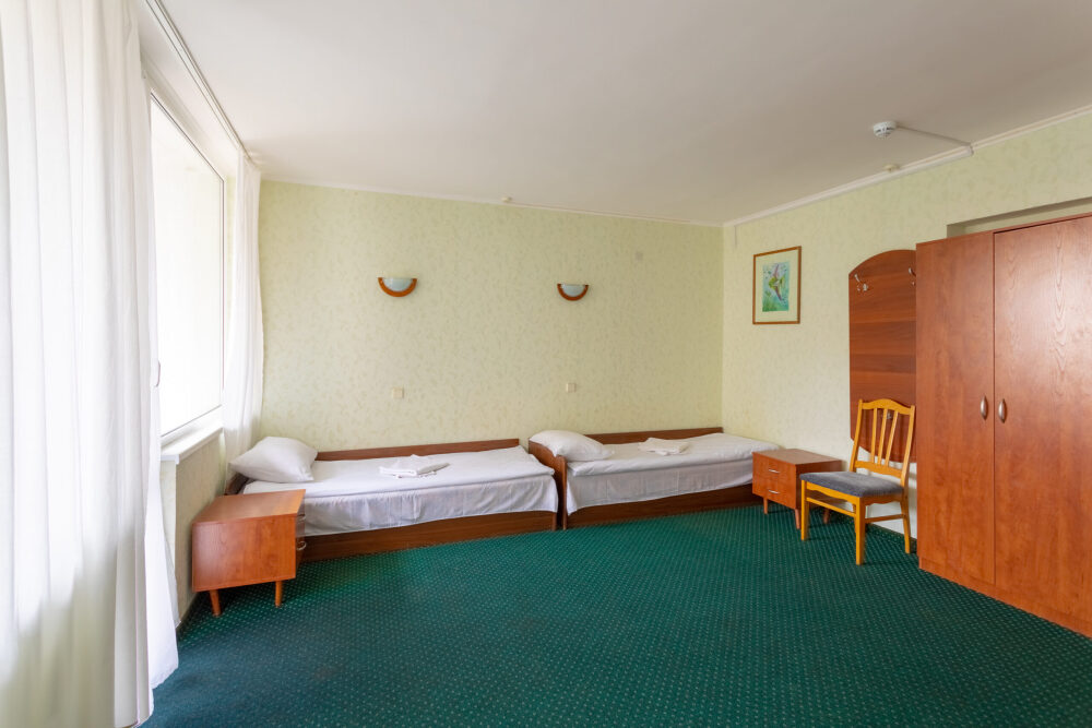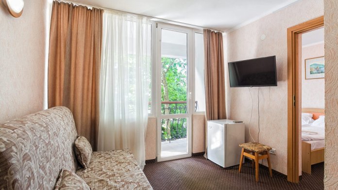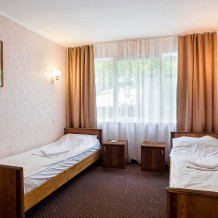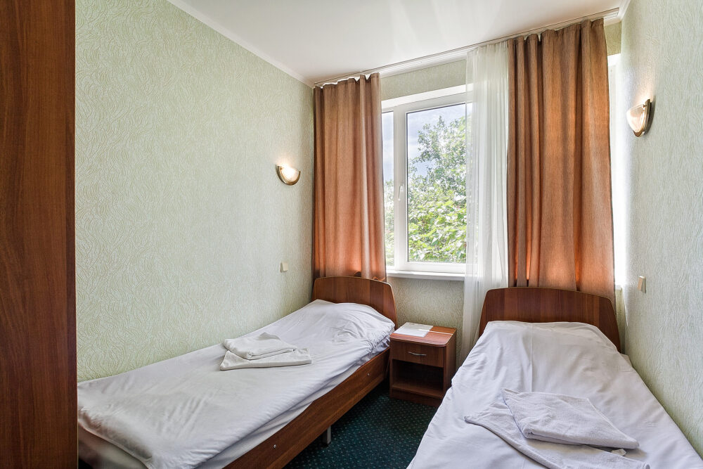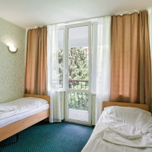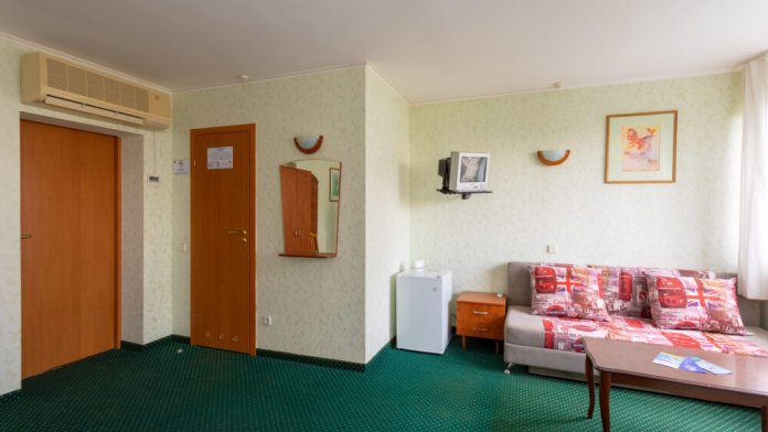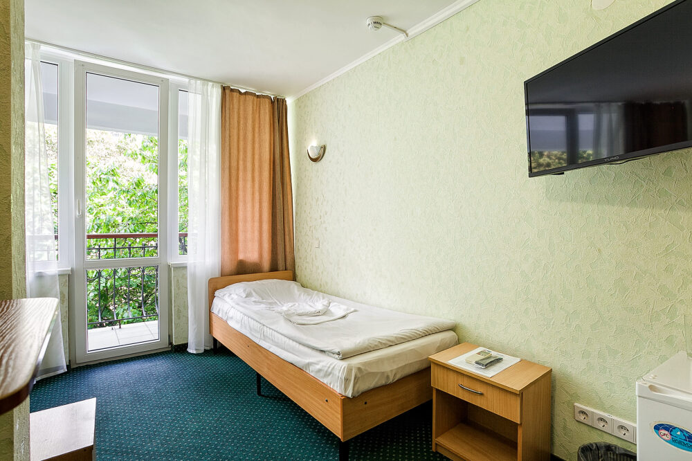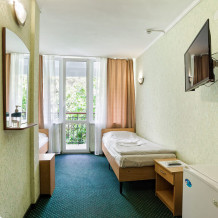 1-комнатный 2-местный номер категории «Стандарт В Плюс» с возможность дополнительного места на раскладушке (окна выходят на северную сторону) оснащен: всеми удобствами (туалет, умывальник, душ), кондиционер, телевизор, холодильник, набор современной мебели, без балкона.