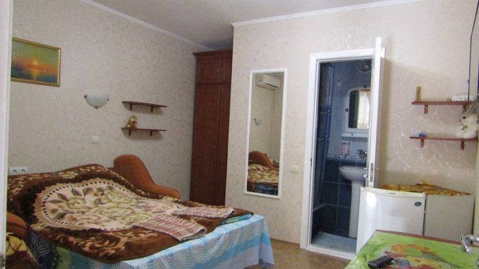 Вашему вниманию предлагаются уютные и просторные номера с евроремонтом, оборудованные всем необходимым для комфортного проживания 2−3 человек. В номере есть санузел (душ, туалет, умывальник), двуспальная кровать или две односпальные, детская кроватка, шкаф с встроенным сейфом, холодильник, кондиционер, телевизор, Wi-Fi, журнальный столик, электрический чайник. У каждого номера имеется комфортная, отделанная натуральным деревом веранда с диванчиком, столом и стульями, где обычно наши гости кушают и отдыхают от летнего зноя.