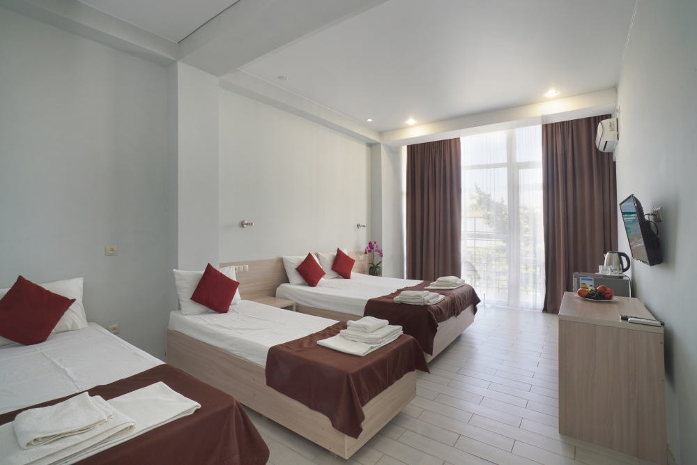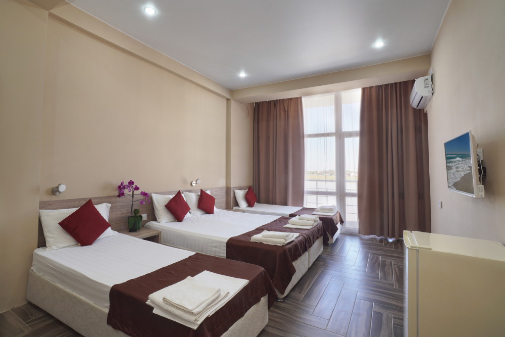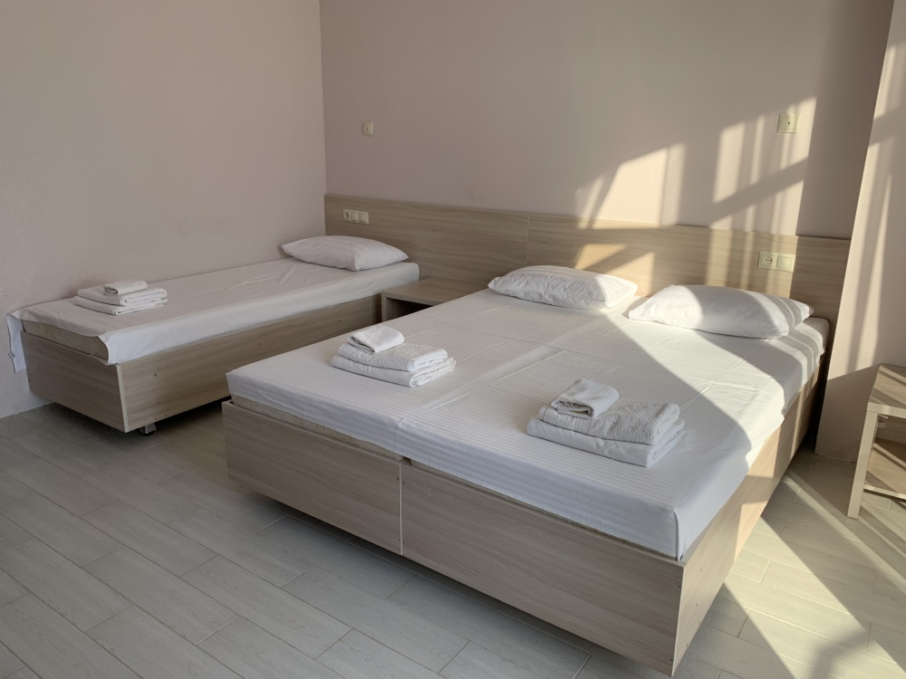 Просторный трехместный номер с балконом, возможно установить дополнительное место - раскладушку.