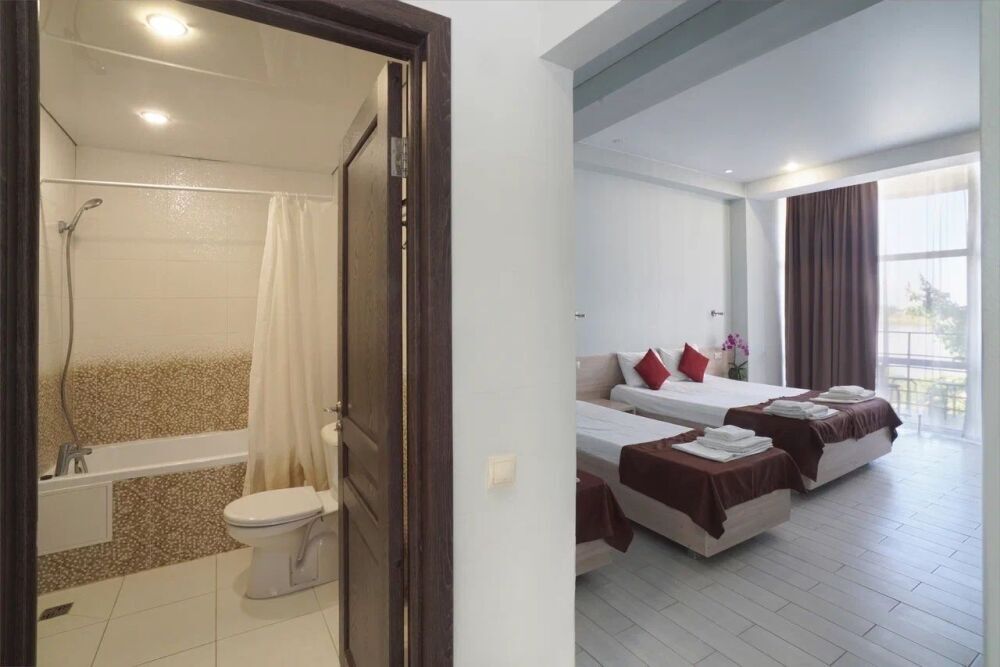 В номере четыре полноценных спальных места, прихожая, большой балкон.