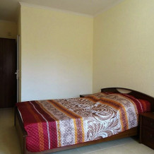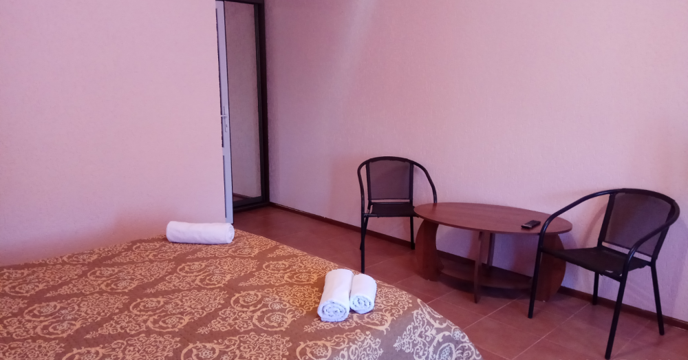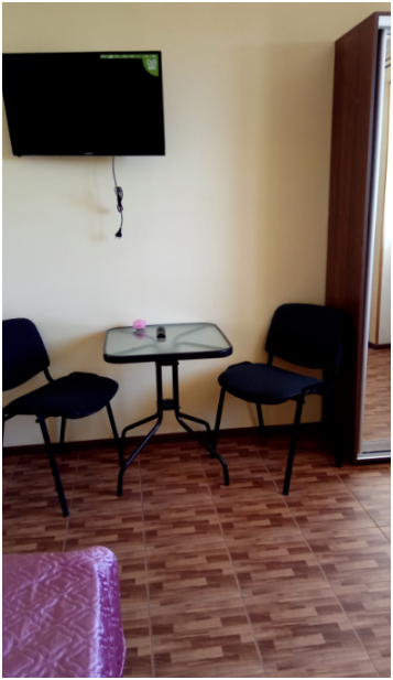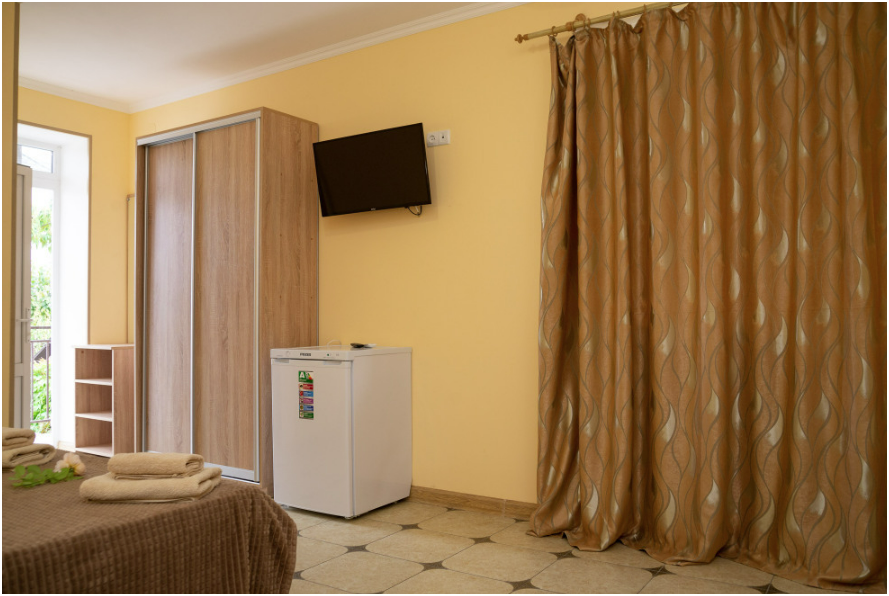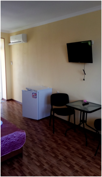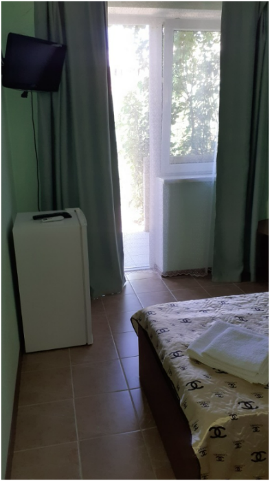 Все комнаты оборудованы: сплит системами, холодильниками ,телевизорами с кабельным телевидением, холодная и горячая вода постоянно, есть необходимая мебель для комфортного проживания, на всех кроватях ортопедические матрасы, на балконах и лоджиях столики и стулья, есть сушилки для белья, в номере «люкс» чайник и чайный набор посуды. Комната предоставляются по факту заезда.
