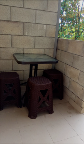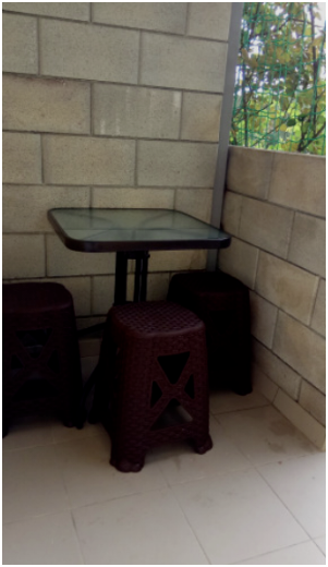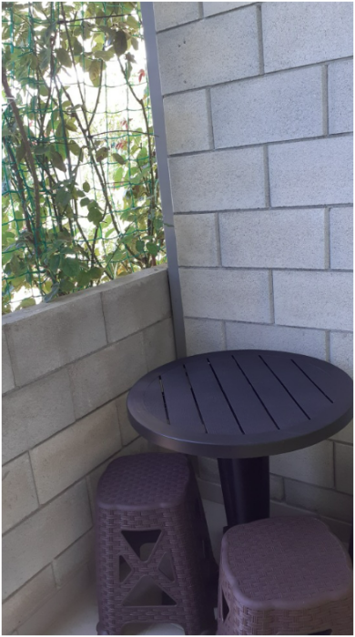На первом этаже -лоджия с мебелью, на втором этаже балкон с мебелью.