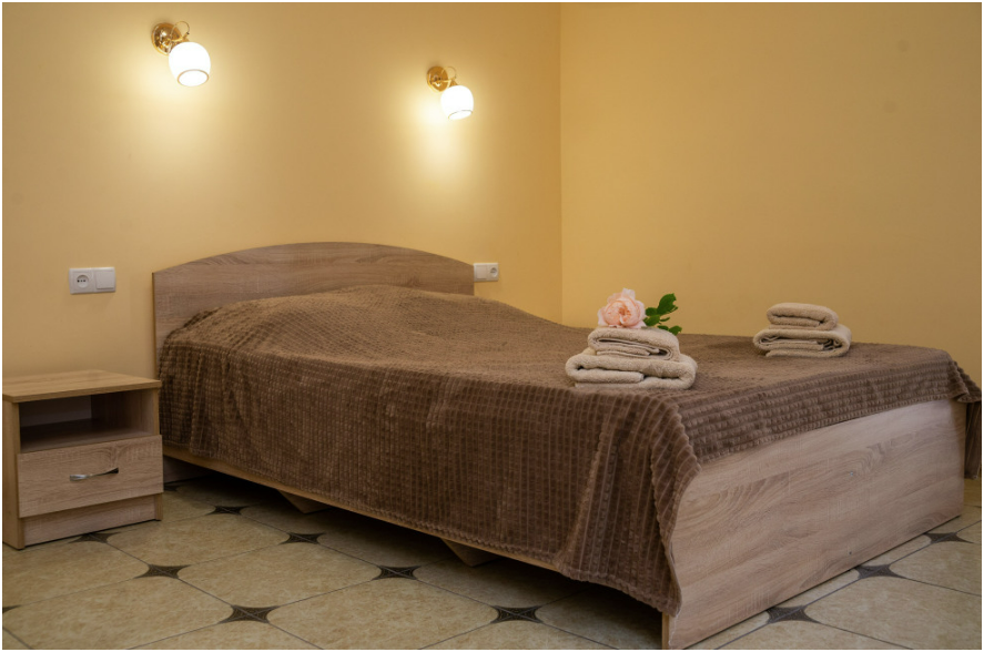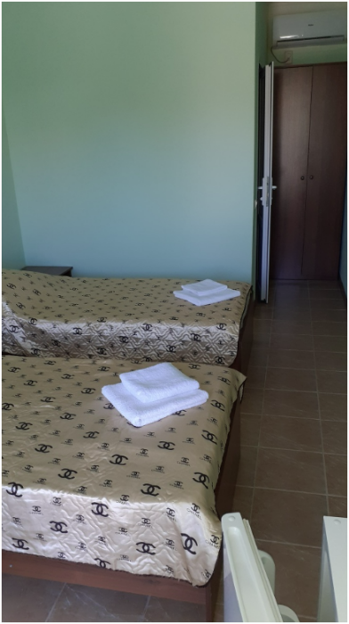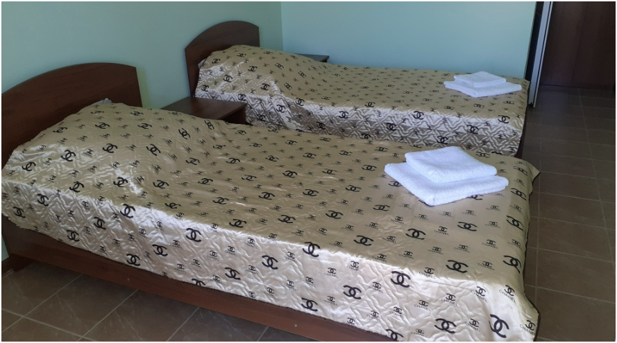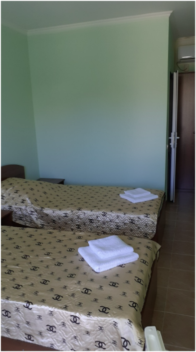 Двухместная комната с 2-спальной кроватью или с двумя односпальными кроватями с ортопедическими матрасами. Предоставляется гладильная доска и утюг.