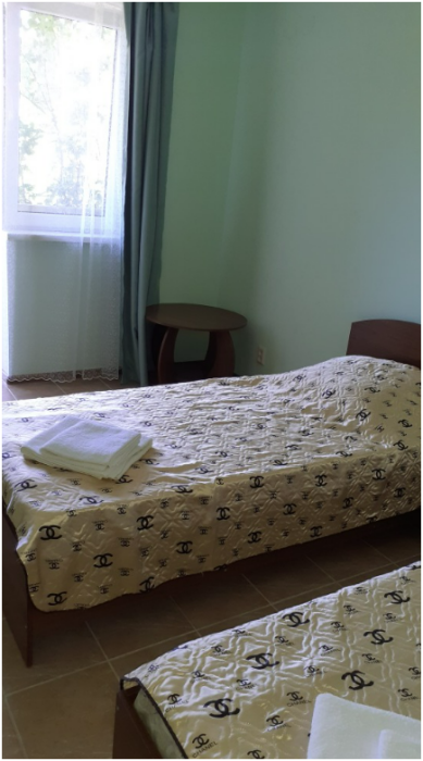 Комната 4- х местная с двухспальной кроватью и 2 односпальными кроватями с ортопедическими матрасами.