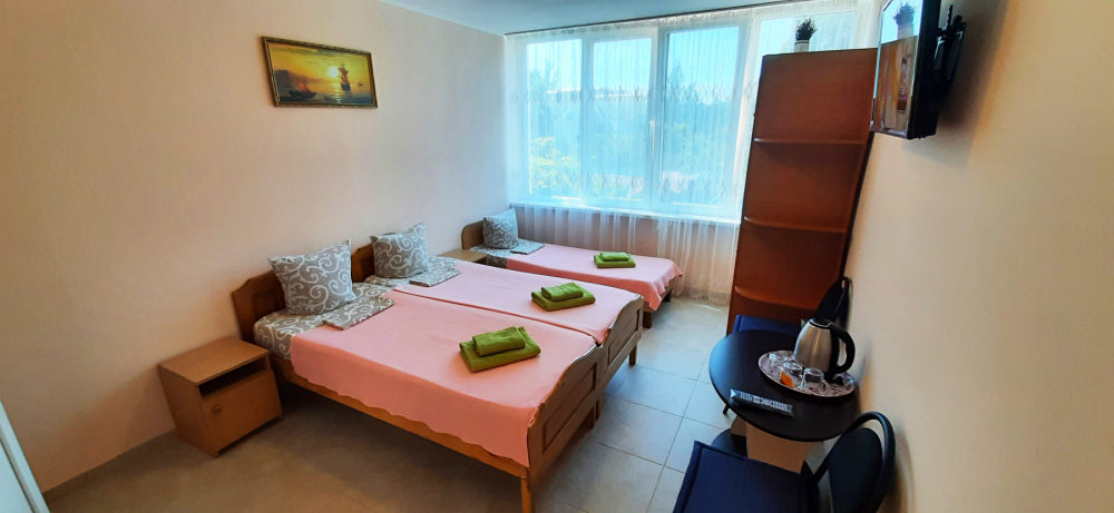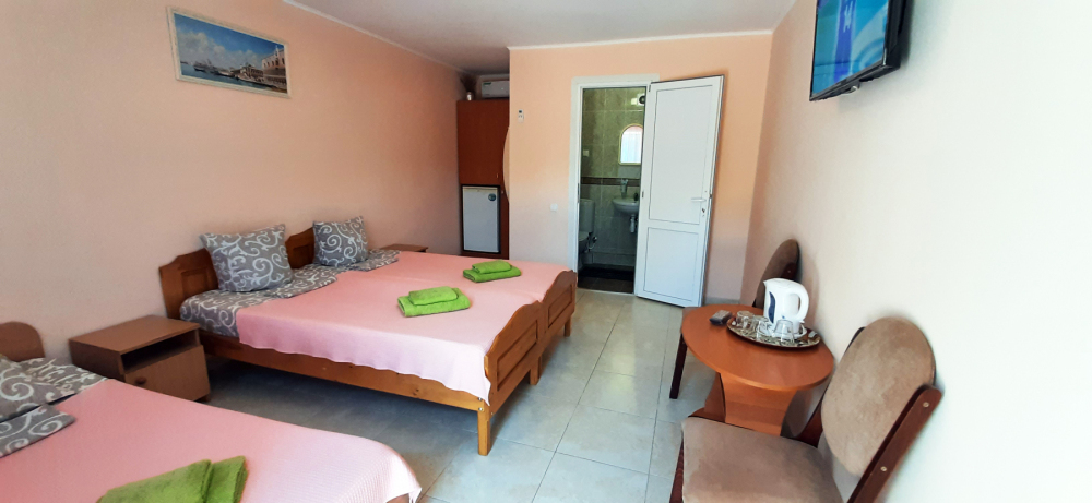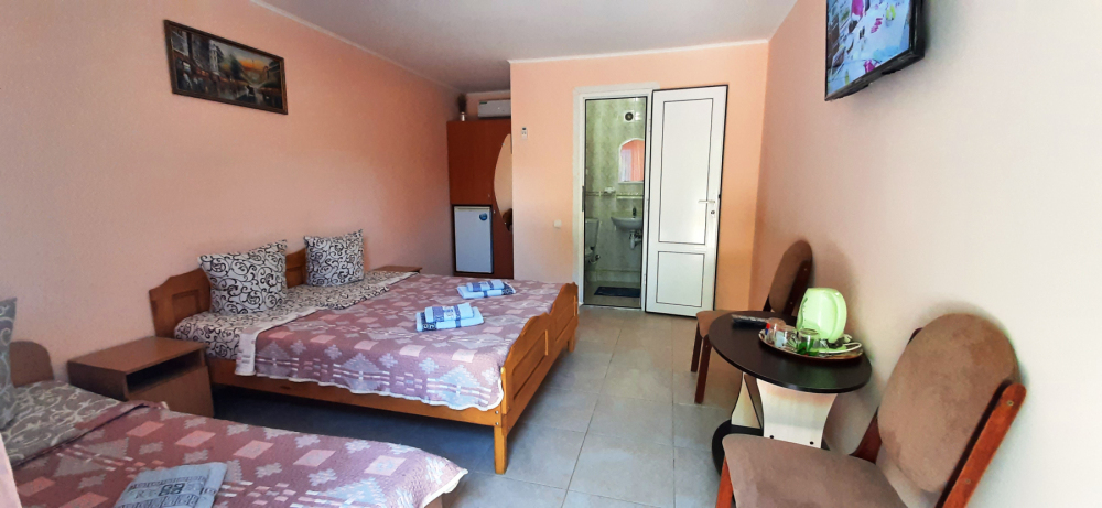 К услугам отдыхающих комфортабельные 2-3 местные номера Стандарт. В каждом номере есть: сплит-система, телевизор, спутниковое ТВ, интернет, холодильник, чайник, санузел, общая терраса.
