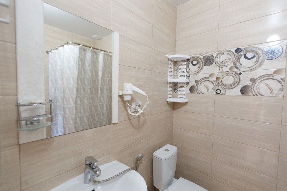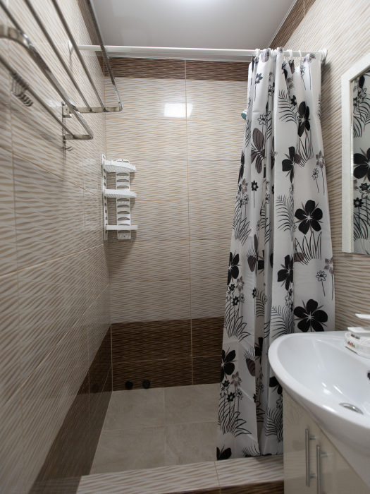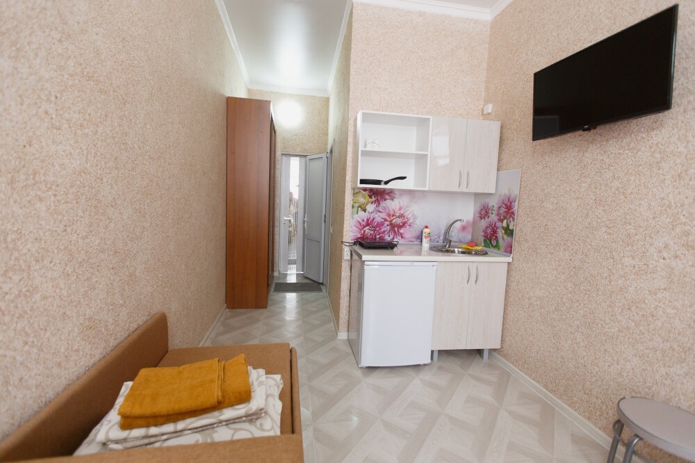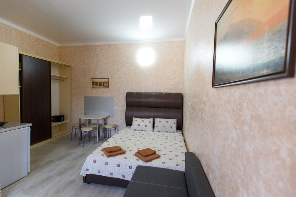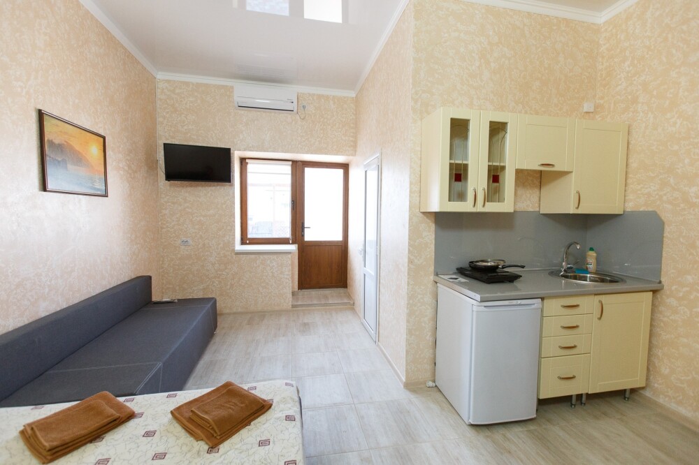 Гостевой дом хороший, все необходимое есть: кондиционер, кулер, холодильник, утюг, мини-сейф, бассейн, шезлонги и зонты, мангал, зона отдыха. Выдают и меняют пляжные полотенца, очень отзывчивые горничные и администратор Наталья. Один минус: далеко от пляжа и центральной набережной. Возможно, что когда откроют после ремонта набережную Терешковой, будет ближе ходить на пляж. Зато рядом Малый Иерусалим, вечером можно гулять, много интересных исторических мест