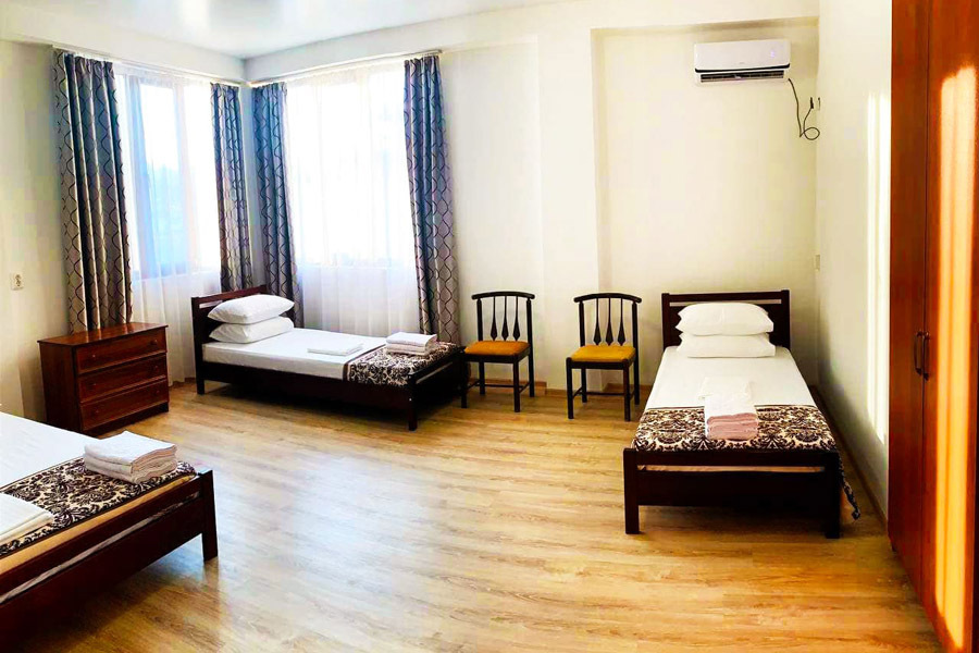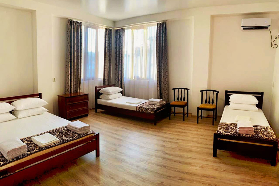 Для размещения отдыхающих подготовлены номера разных категорий и вместимости. Каждый из номеров отлично меблирован, укомплектован телевизором, холодильником, кондиционером, санузлом, доступом к интернету Wi-Fi.