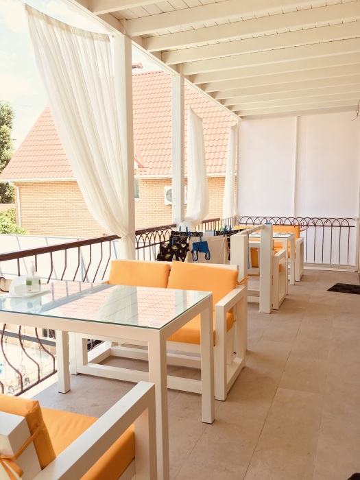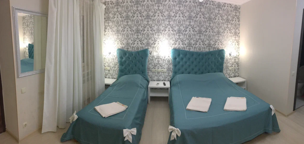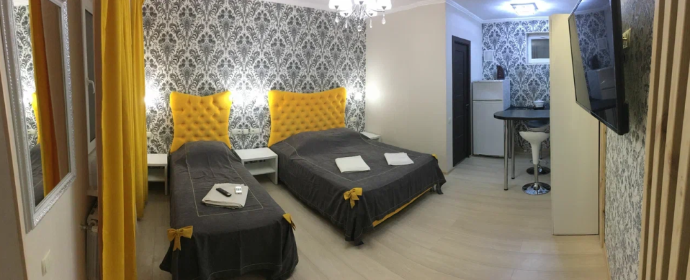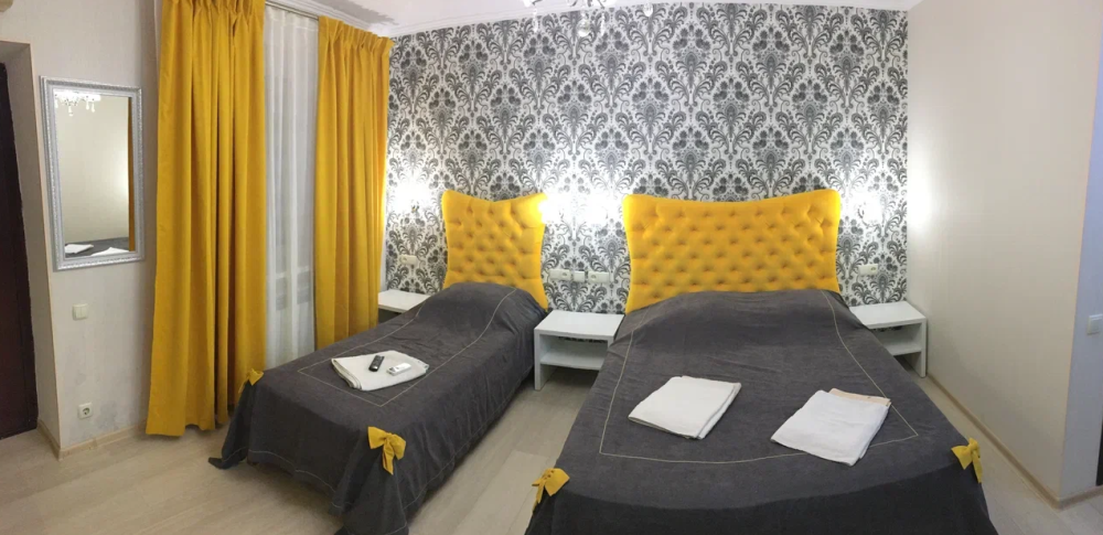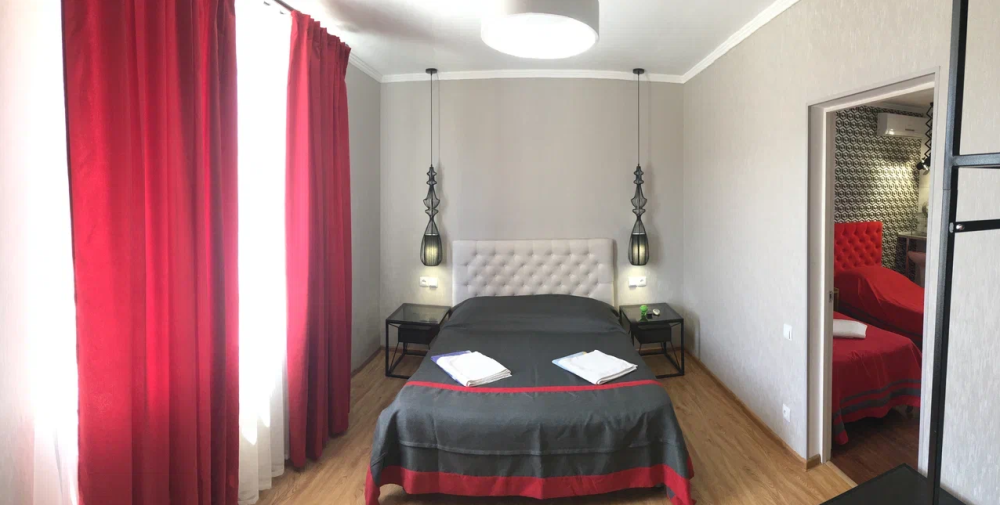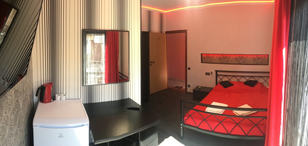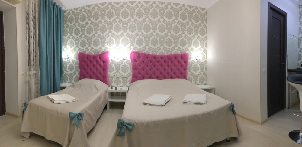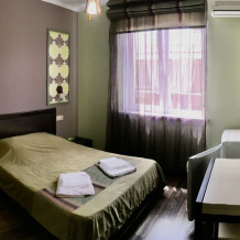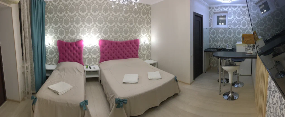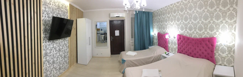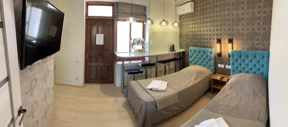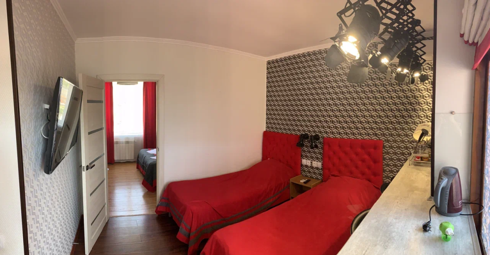 В доме всего 20 комнат. Все комнаты имеют индивидуальный дизайн и прекрасный вид. Мы предлагаем номера с кухней в номере и номера с общей кухней для приготовления пищи. Каждый номер оборудован туалетом и душем, в нем есть доступ к горячей и холодной воде. Номера оборудованы холодильником, кондиционером, телевизором, феном, собственным сан.узлом, есть выход в интернет через Wi-Fi. В номере хорошая мебель, кровати с ортопедическими матрасами.