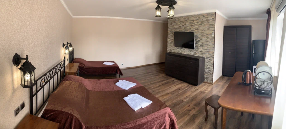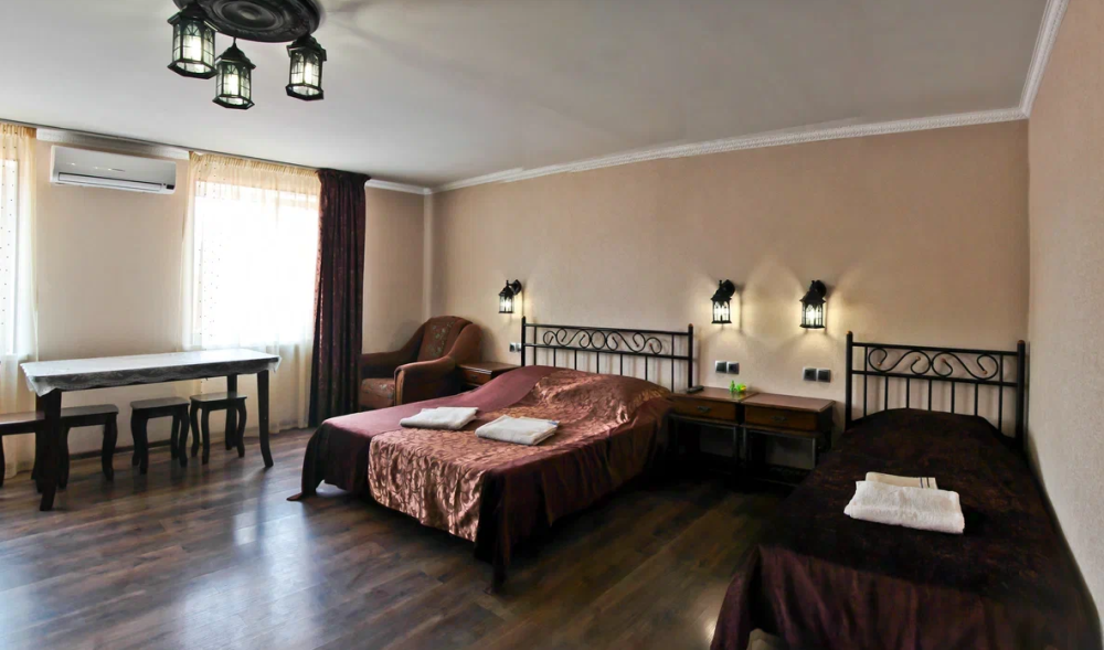 1 двухспальная кровать, 1 односпальная кровать, 1 кресло-кровать