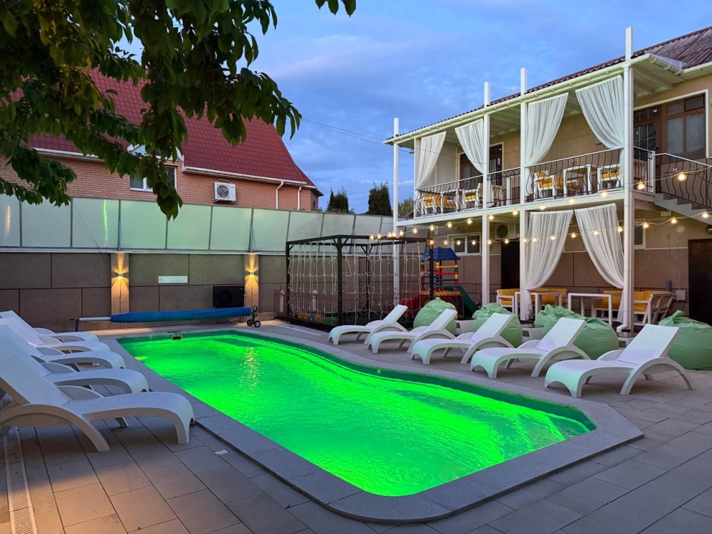 На территории находится большой современный бассейн с подогревом, для детей оборудована детская площадка, где дети могут активно проводить время.