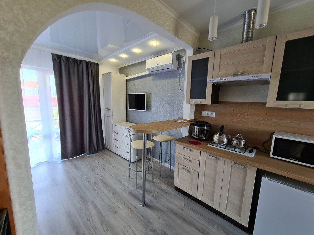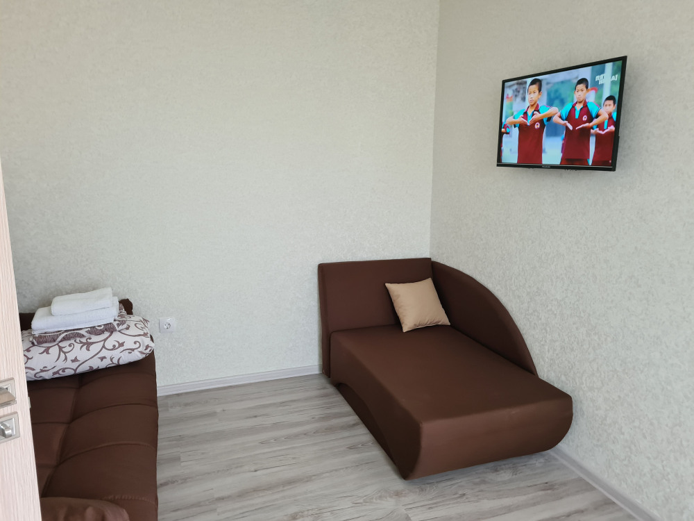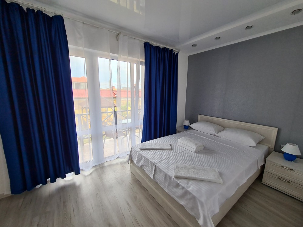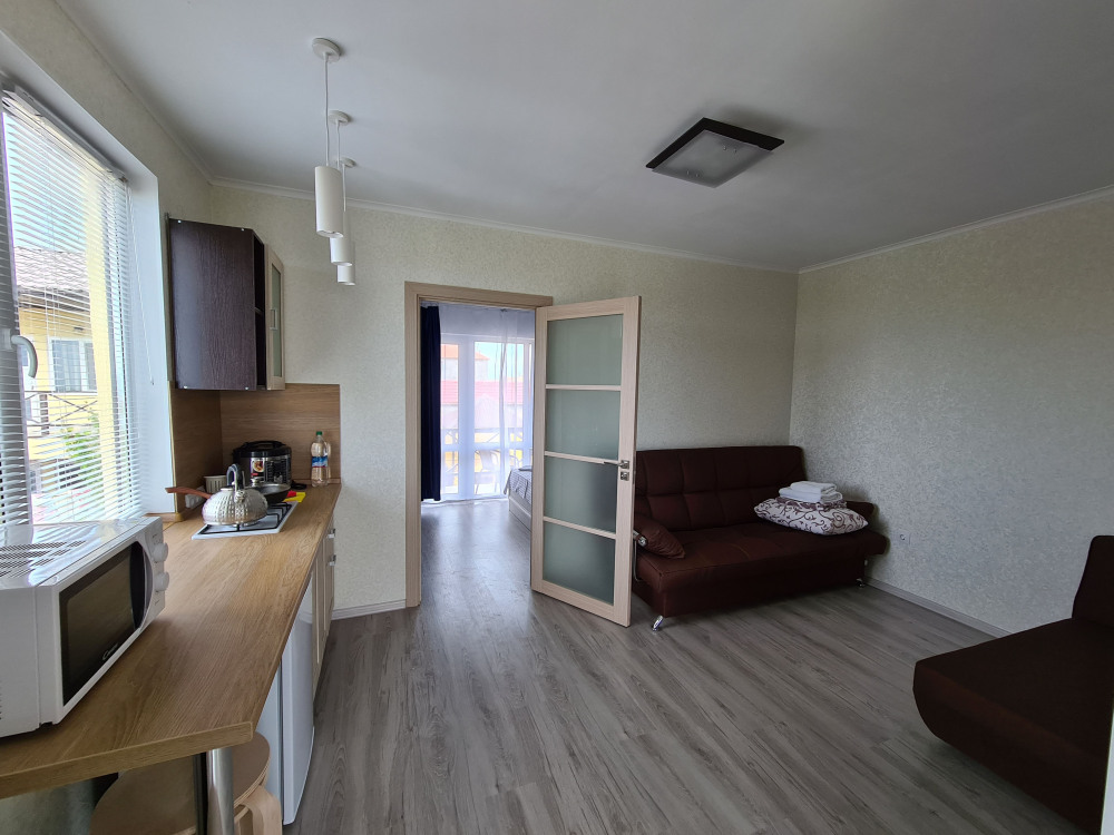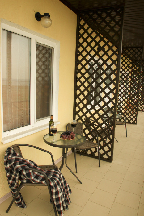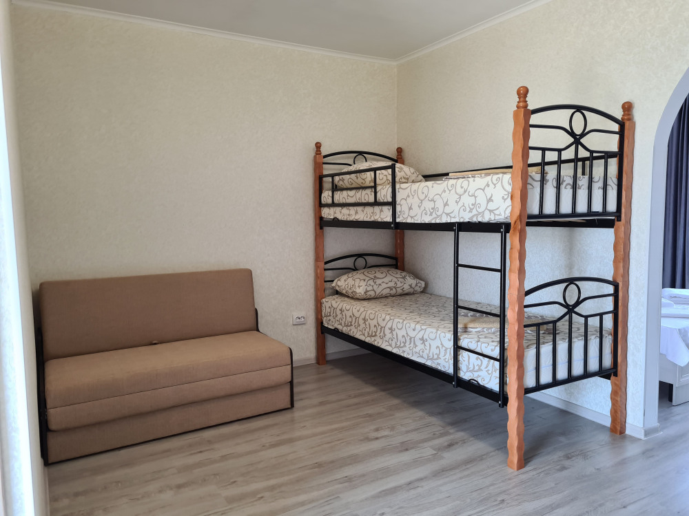 В наших комнатах - вся необходимая мебель, кондиционеры, телевизоры, санузел (холодная/горячая вода круглосуточно). Дополнительные места для Ваших детей, детские кроватки, стульчики для кормления, манеж. Из окон всех номеров открывается вид на море. На территории гостиницы комфортная обеденная зона с большим телевизором, просторная кухня с холодильником и плитой, уютная беседка с барбекю, детская площадка, парковка, Wi-Fi.