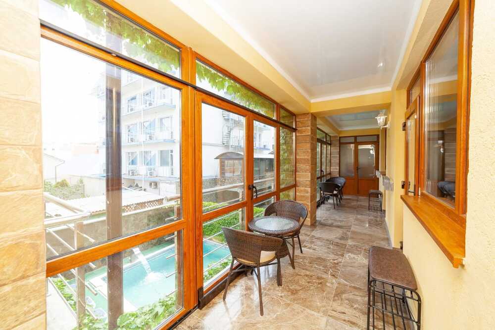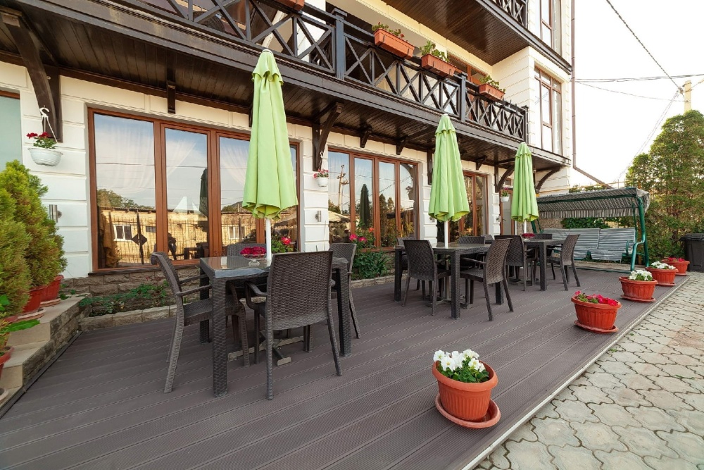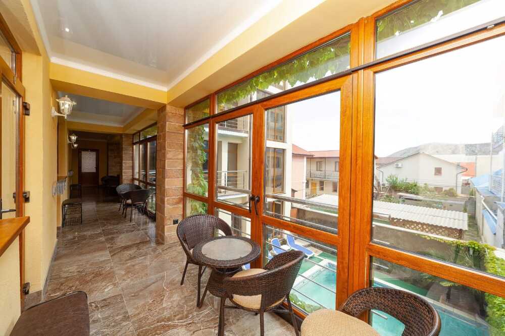 Наши гости могут пользоваться бесплатным Wi-Fi. На территории Гостевого дома есть открытый бассейн. Для тех, кто путешествует на собственном автомобиле, предусмотрена парковка. При желании гости могут заказать трансфер от/до аэропорта. Для обеспечения безопасности ведется видеонаблюдение. На балконах и террасах для отдыха гостей установлены современные ротанговые кресла и столики, возле бассейна удобные испанские шезлонги, на территории имеется мангал для самостоятельного приготовления шашлыков. Достопримечательностью нашего отеля является красивая детская деревянная площадка с песочницей и атрибутами для нее. Для самостоятельного приготовления предусмотрена кухня.