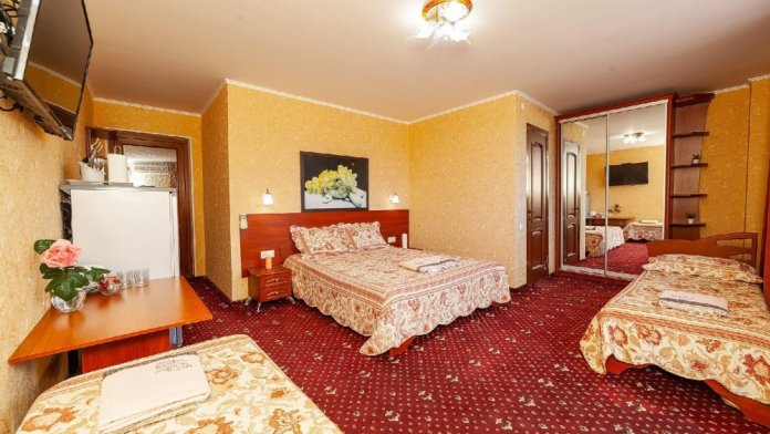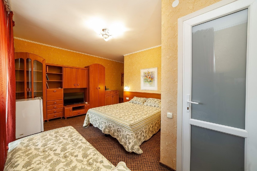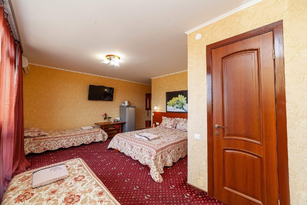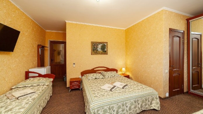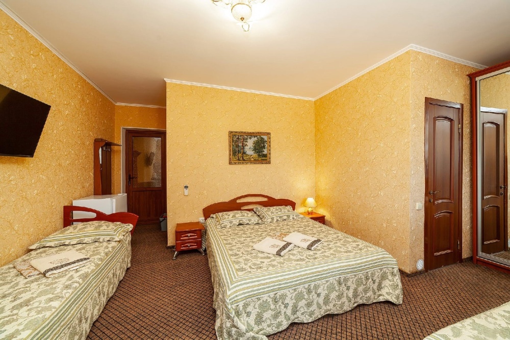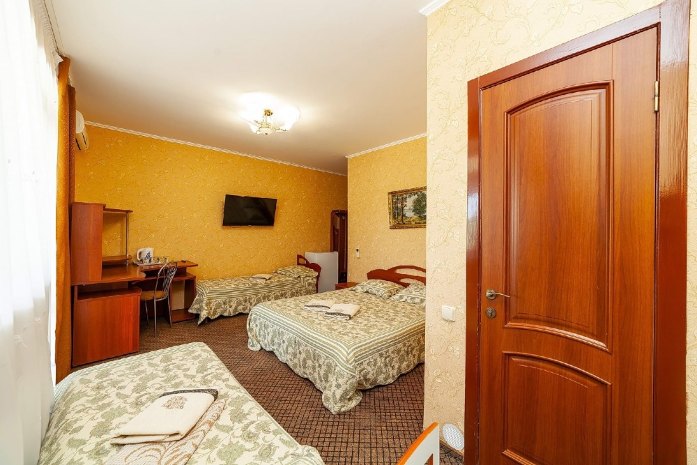 В гостевом доме есть комфортные комнаты с размещением от 1 до 8 человек , как однокомнатные, так и двухкомнатные. Категории комнат: «Стандарт», «Комфорт», «Полулюкс», «Коннект» (Коннект это уникальное и редкое размещение для большой семьи или близких друзей, желающих отдыхать вместе. В каждой комнате имеется индивидуальный санузел, холодильник, телевизор, кондиционер, это две полноценные комнаты для отдыха . Первая комната проходная , вход во вторую комнату с общего балкона. Каждая комната закрывается на ключ. Большой балкон удобен для совместного времяпровождения. Все комнаты оформлены в современном стиле и оснащены современной мебелью. Чисто и уютно. Ждем вас.